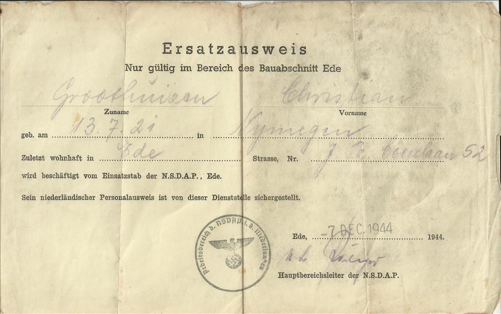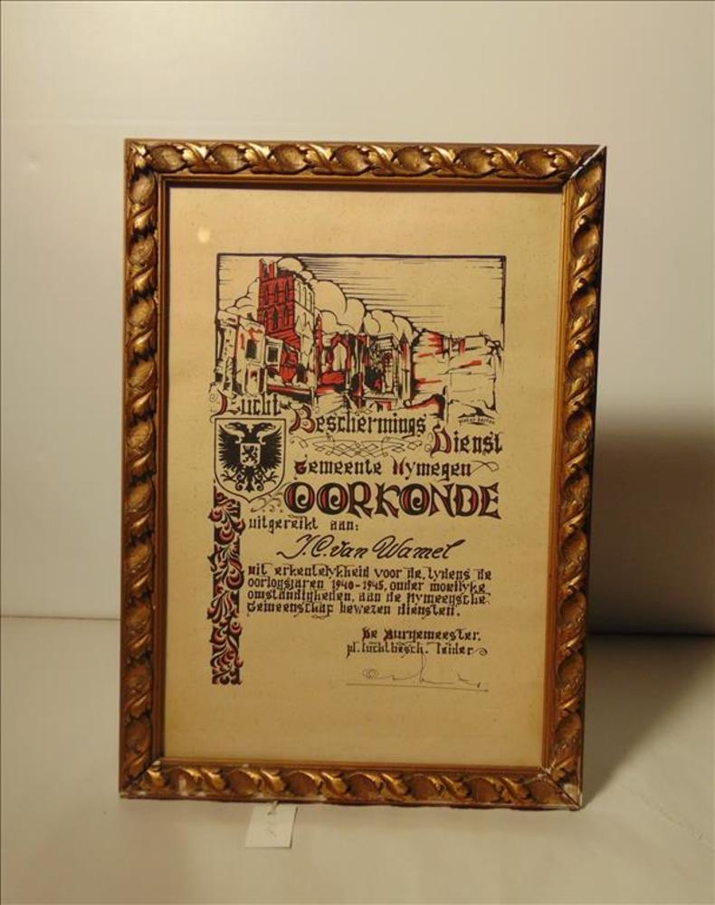 Oorkonde Lucht Beschermings Dienst Nijmegen