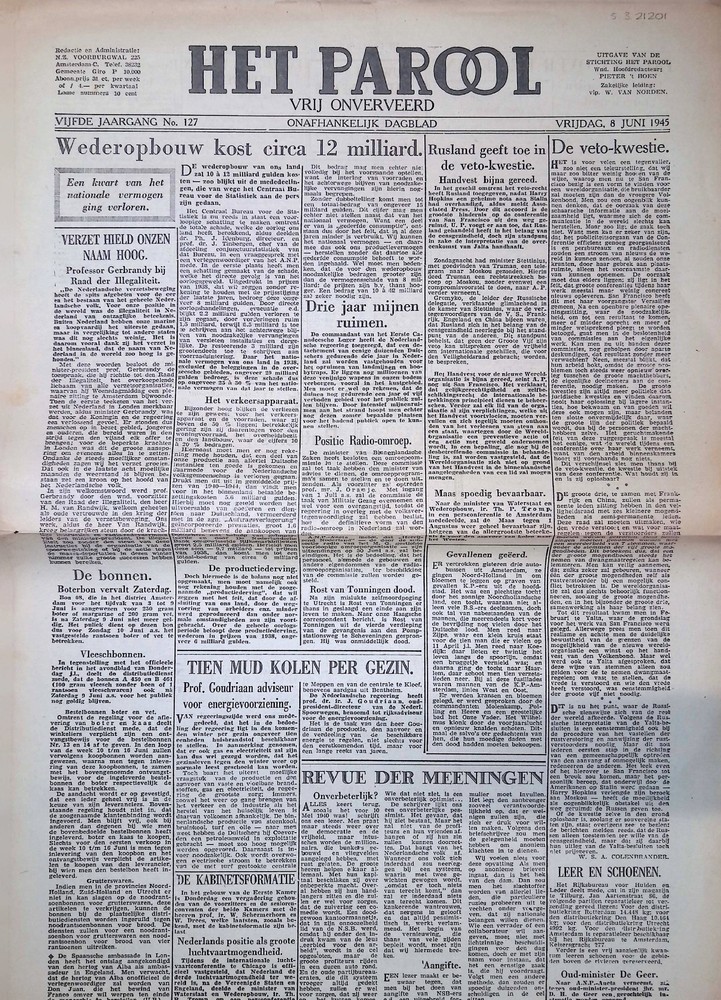Het Parool, 8 juni 1945, 5e jaargang, No 127