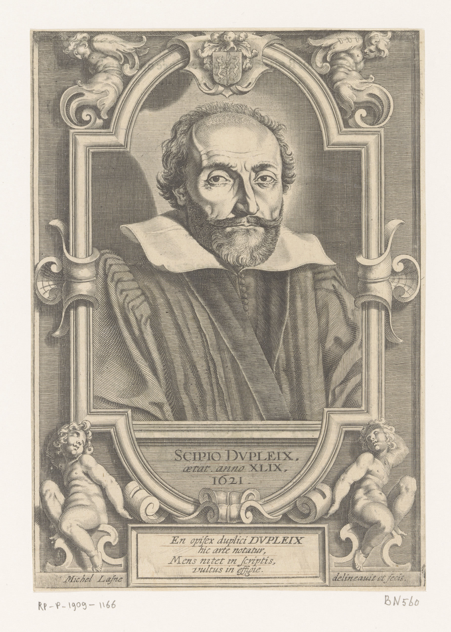 Portret van Scipion Dupleix in een ornamentele lijst...