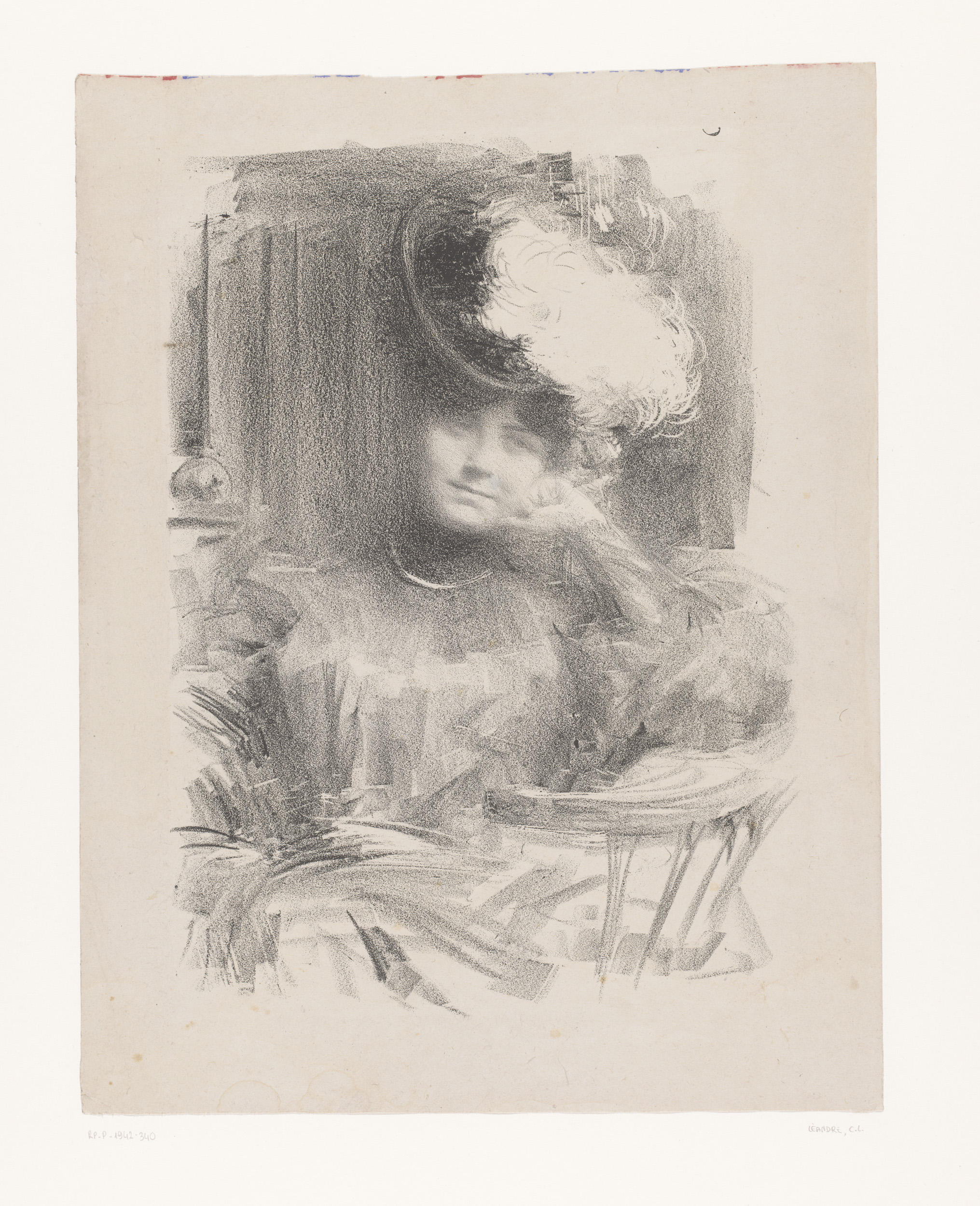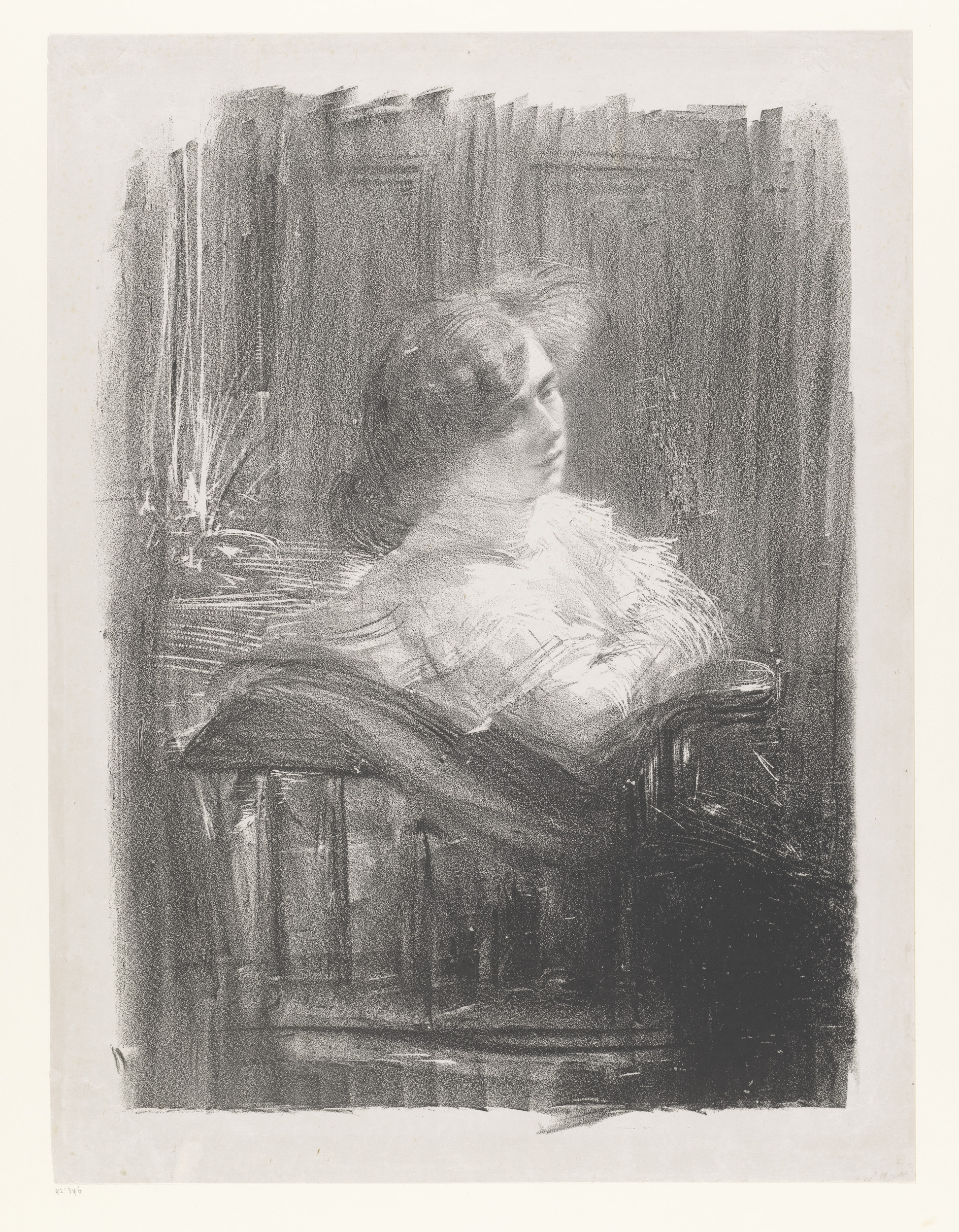 Portret van Louise Blouet (Le Margouin) in atelier v...
