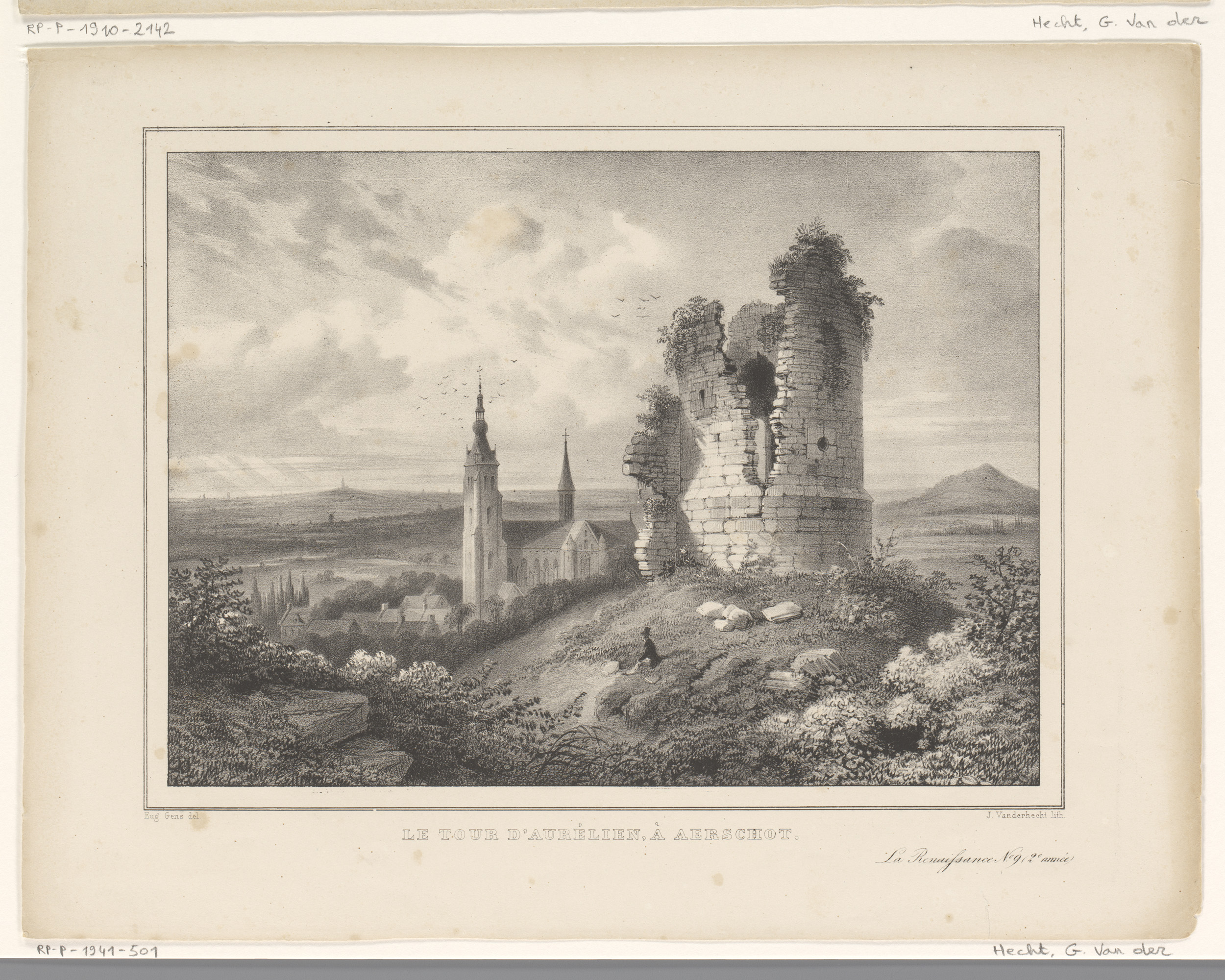 Gezicht op Aarschot met de Aurelianustoren op de voo...