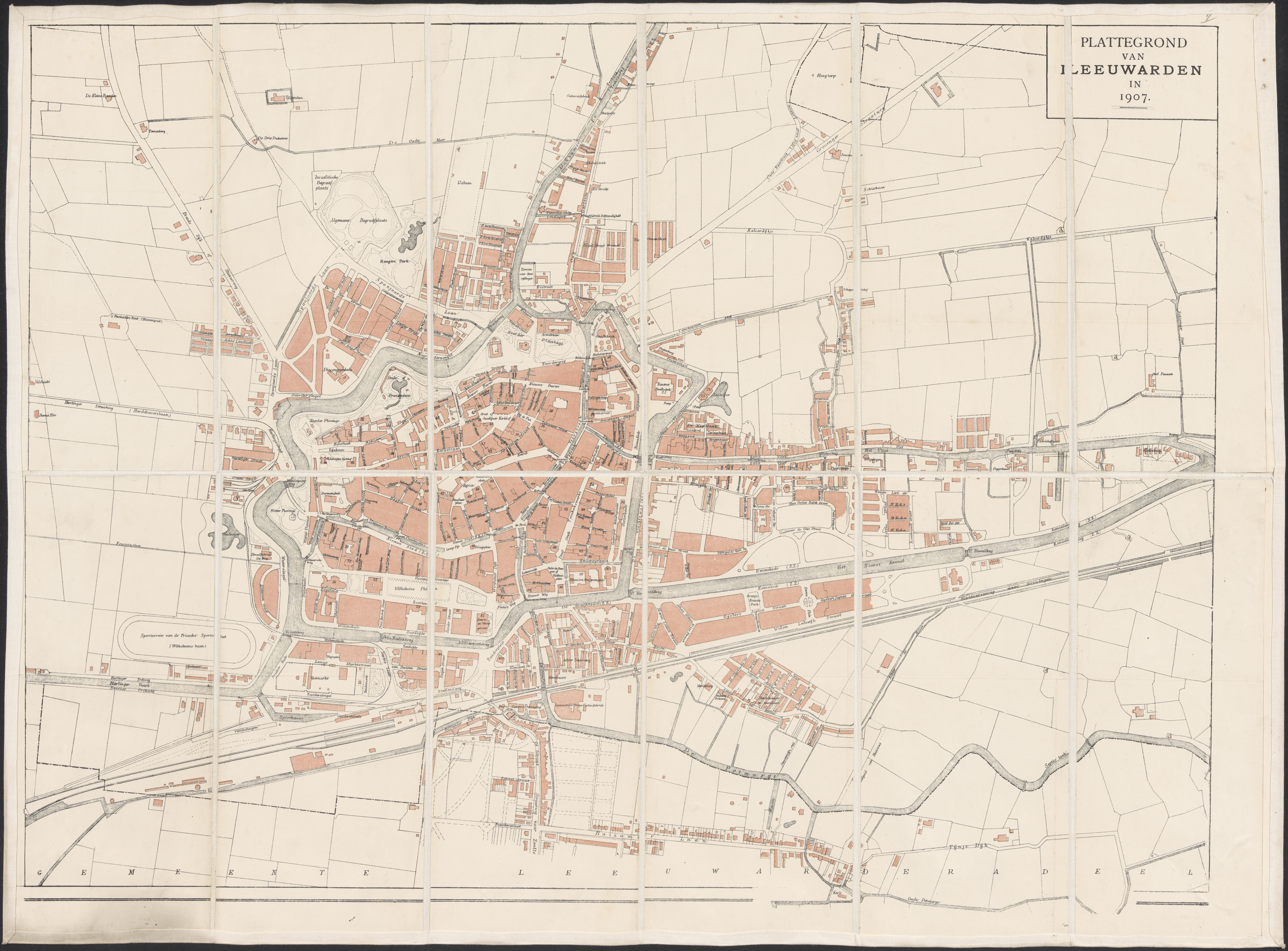 Plattegrond van Leeuwarden in 1907.