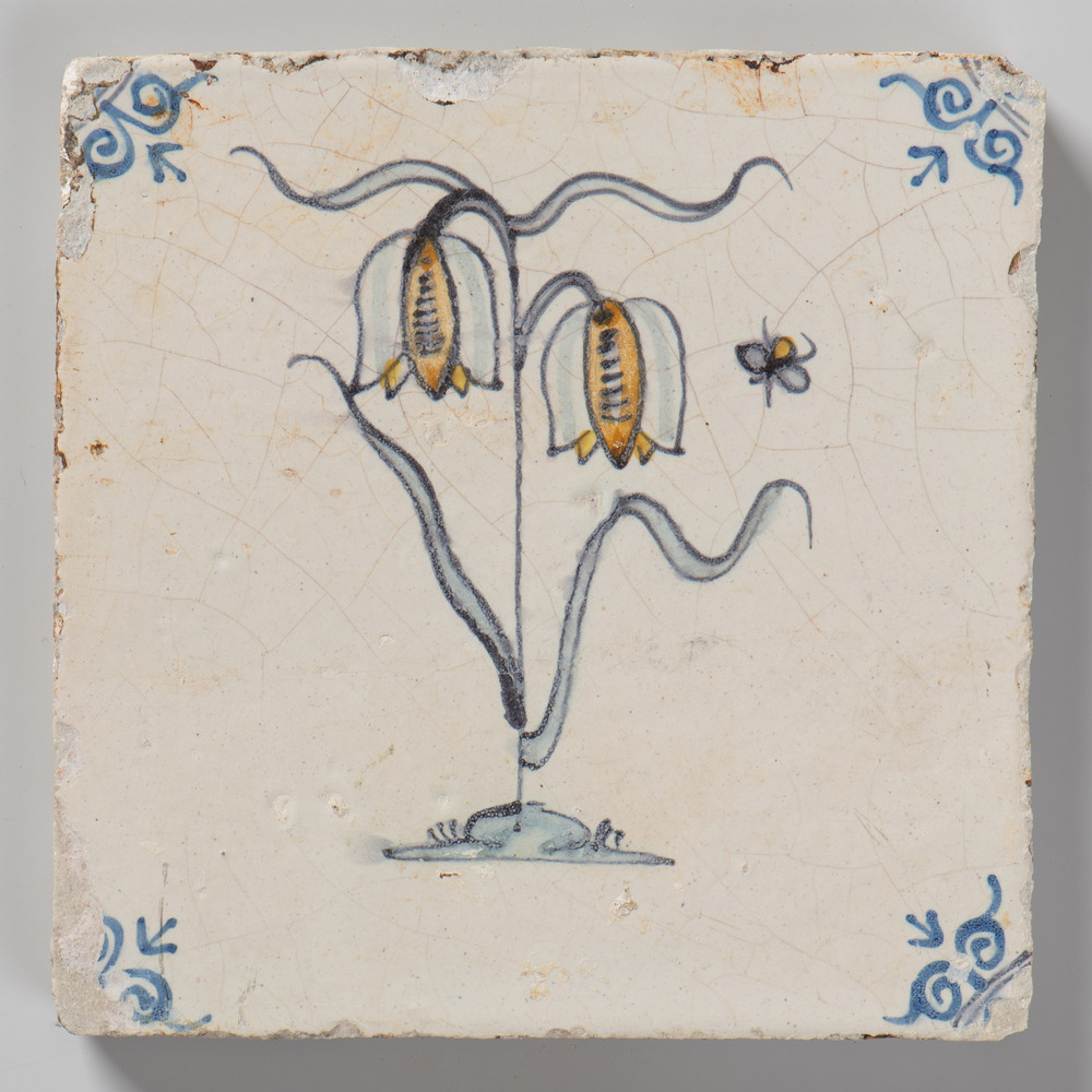 tegel van keramiek met tinglazuur, voorstellende: or...
