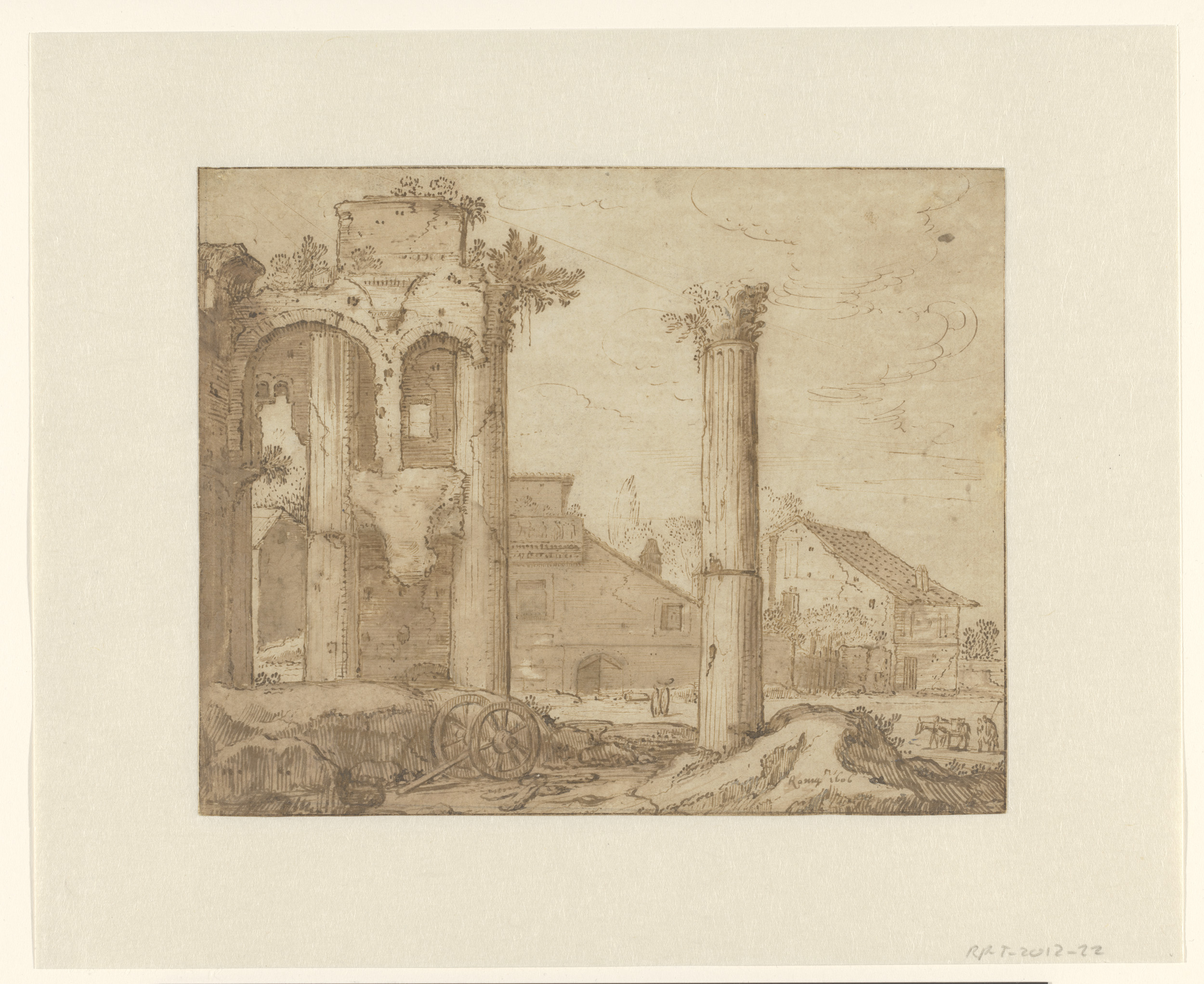 Het Forum van Nerva in Rome, gezien vanaf de tempel ...