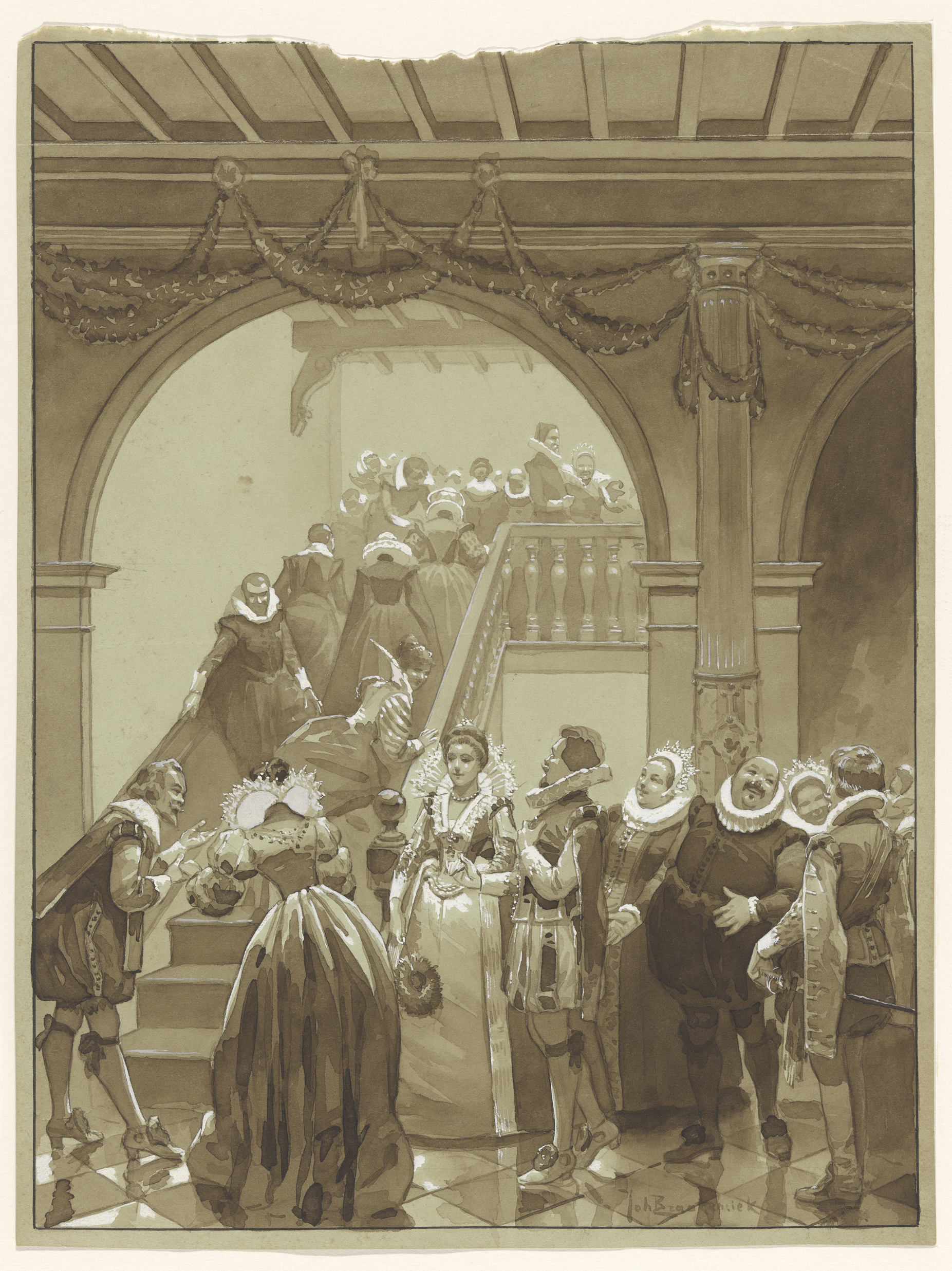 Adel in een trappenhuis in de zeventiende eeuw