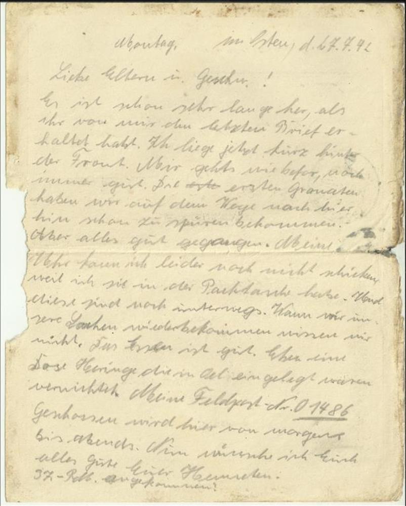 Briefkaart van Heinrich (soldaat) Honig aan Frau Hon...