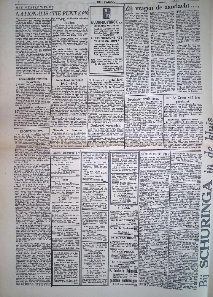 Het Parool, 1 augustus 1945, 5e Jaargang, No 173
