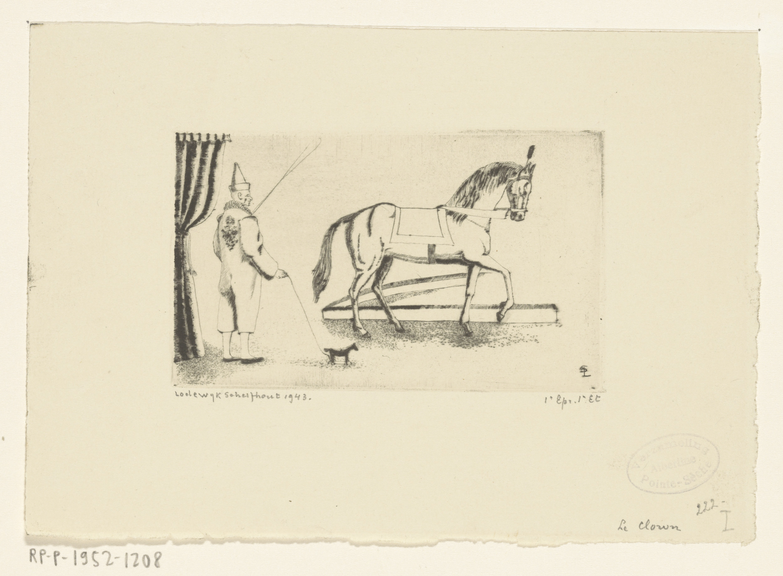 Clown die een paard dresseert