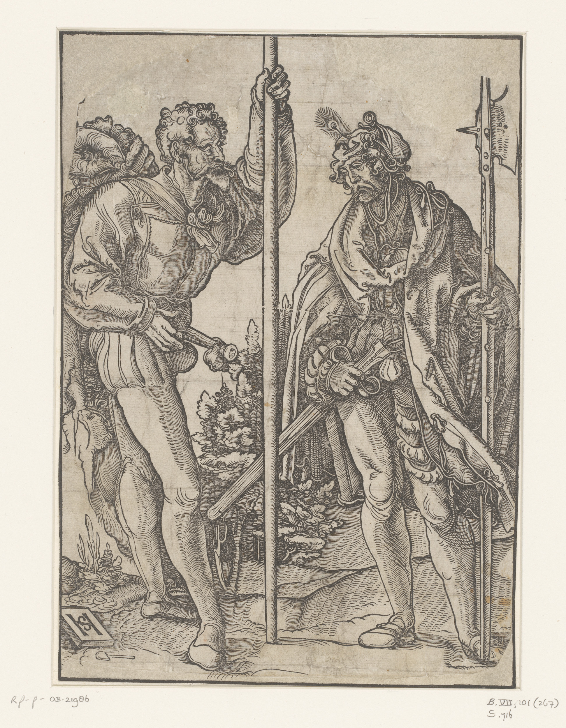 Twee landsknechten met een spies en een hellebaard