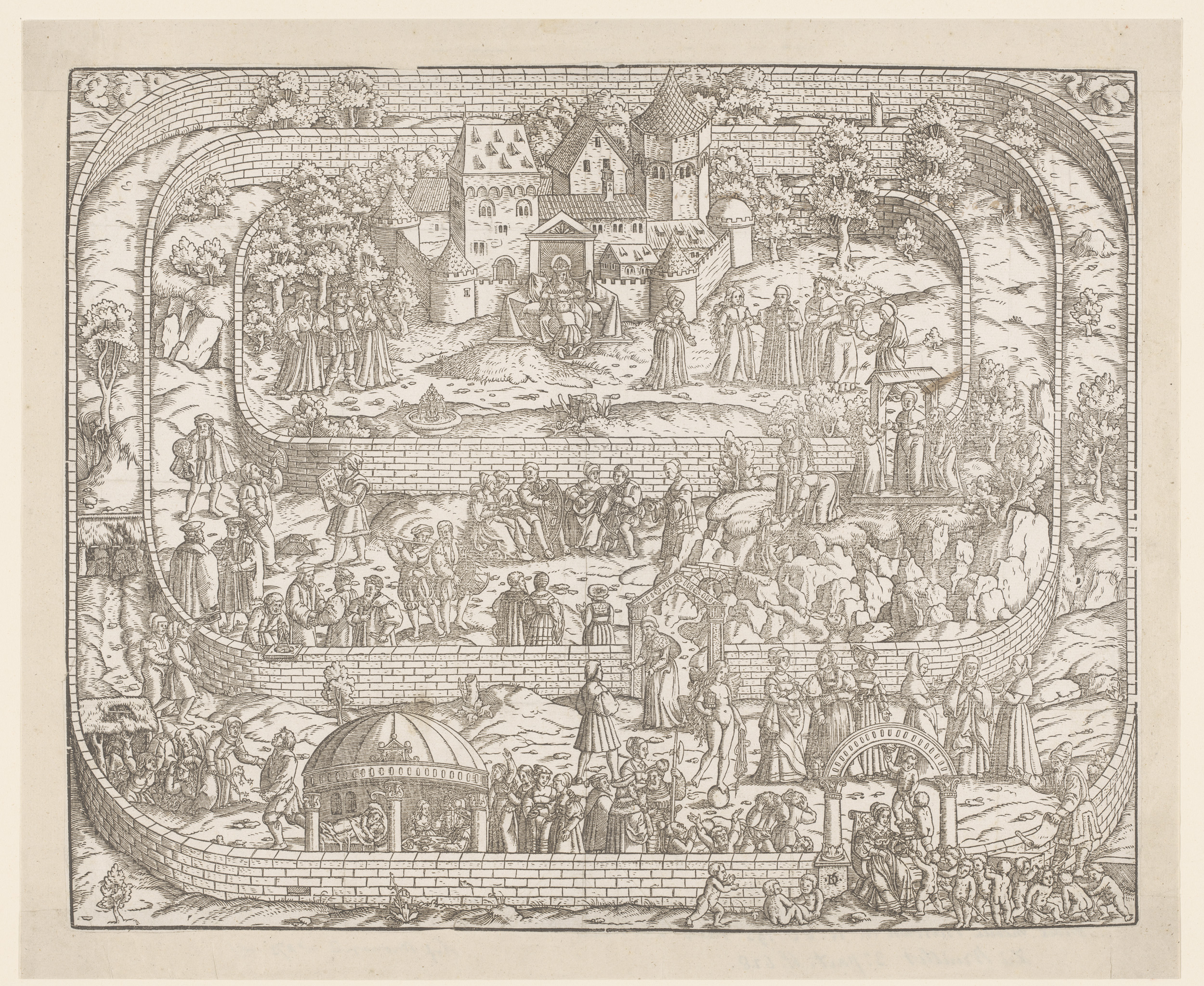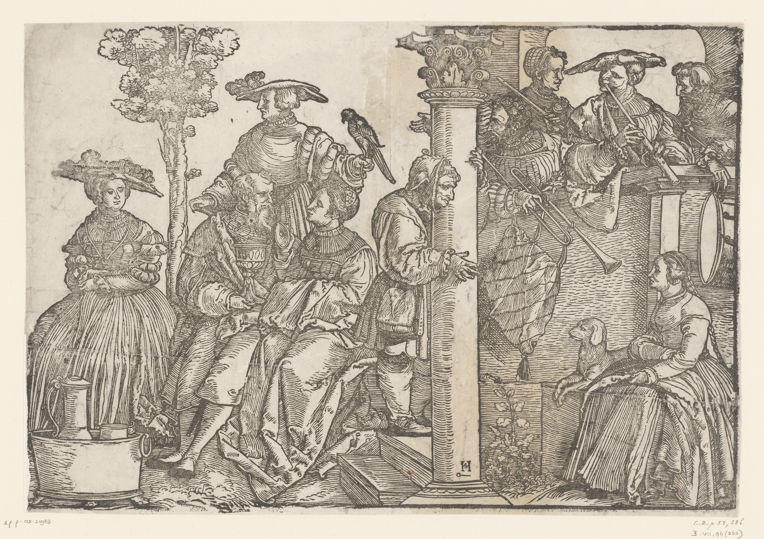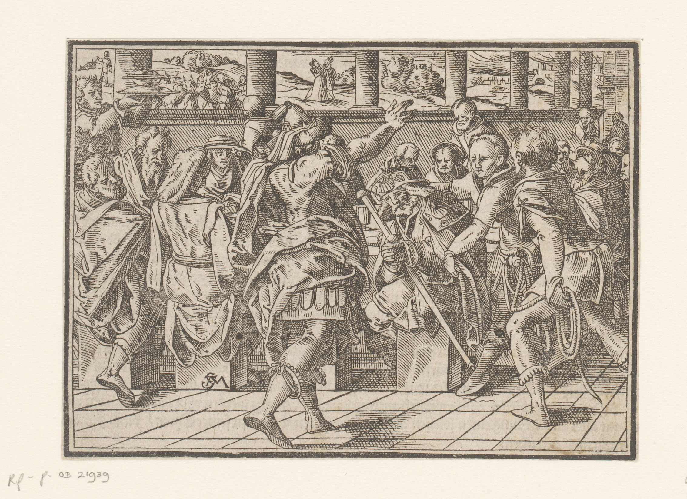 Toeschouwers, muzikanten en een nar