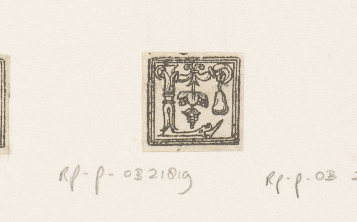 Letter I: ornament met peer en druiventros