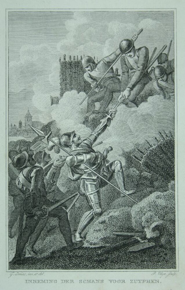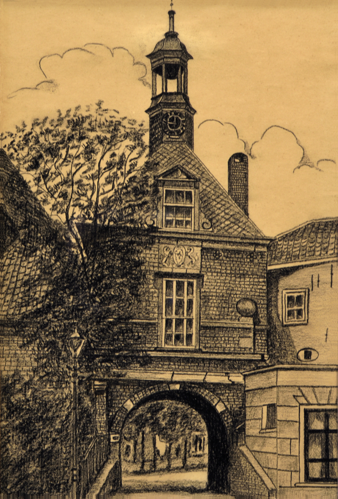 Houtskooltekening van de Waterpoort te Tiel, vervaar...