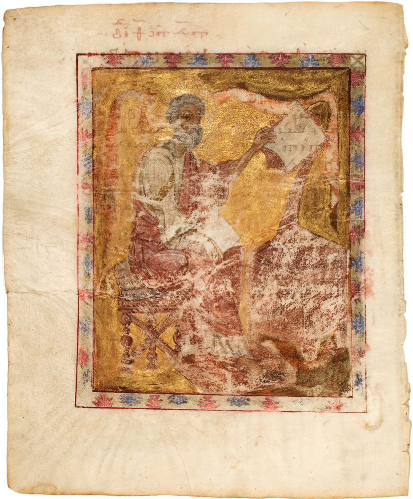 Boekfragment, miniatuur op perkament uit een Evangel...