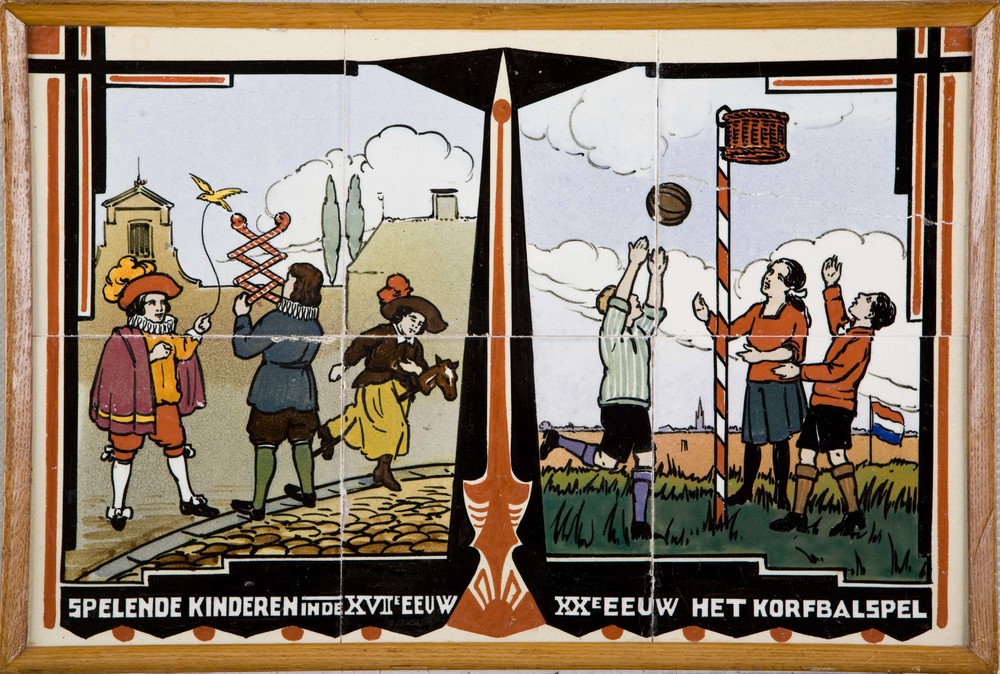 tegel van aardewerk met tinglazuur, voorstellende: o...