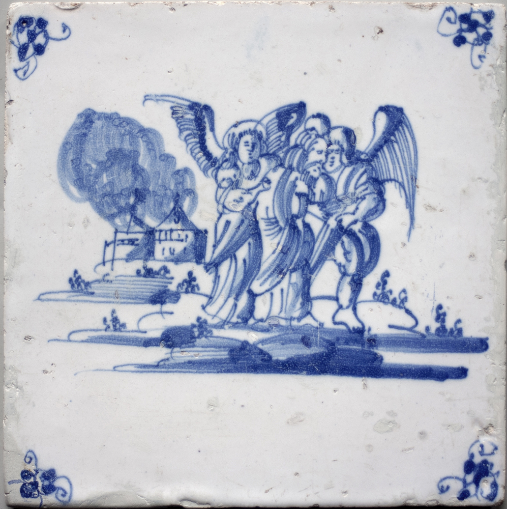 tegel van aardewerk met tinglazuur, voorstellende: h...