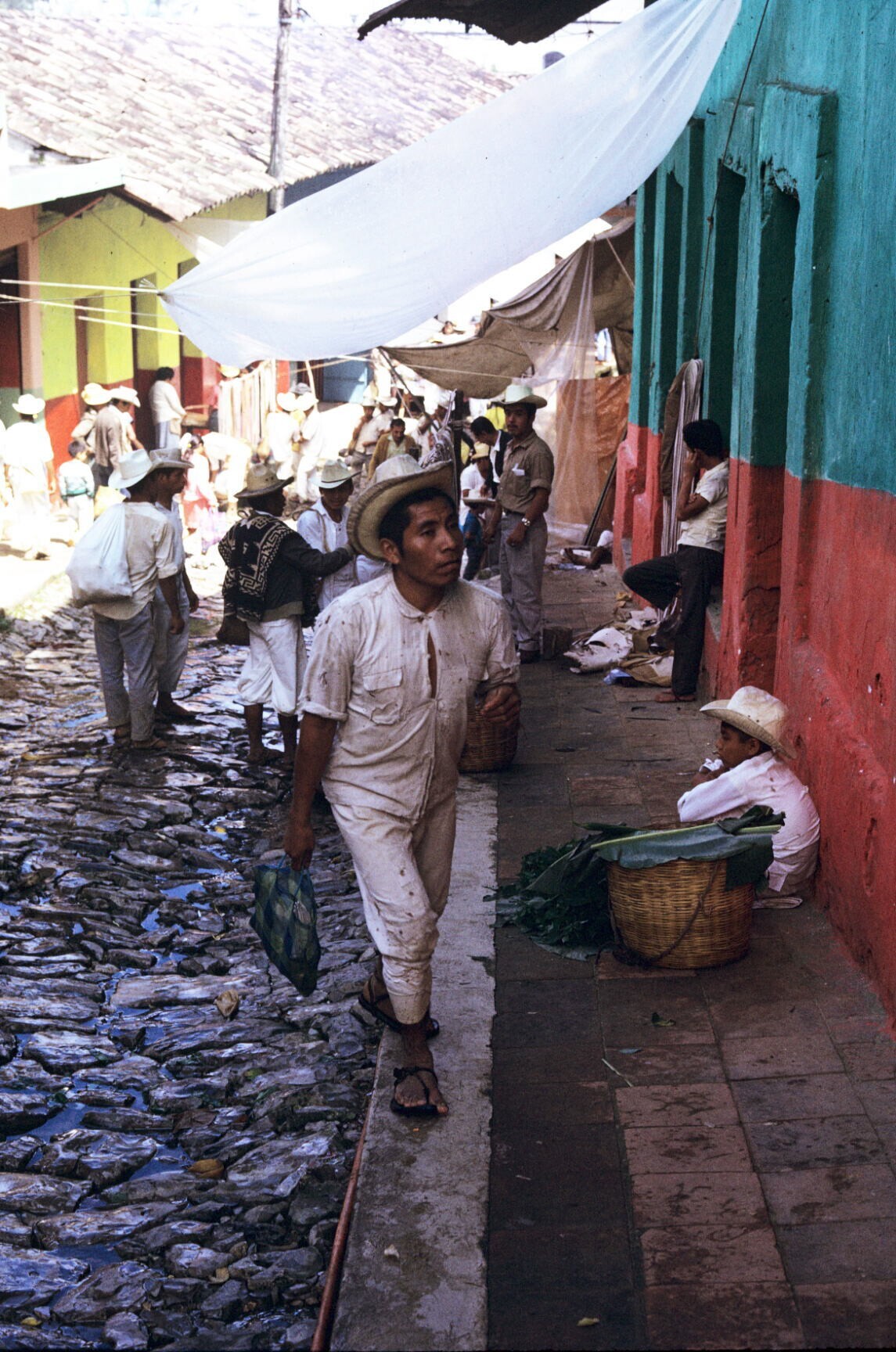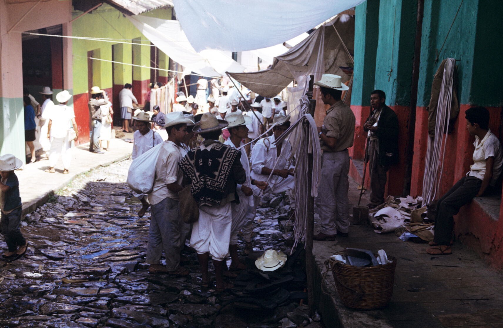 marktscène met "fajas" (ceintuurs)