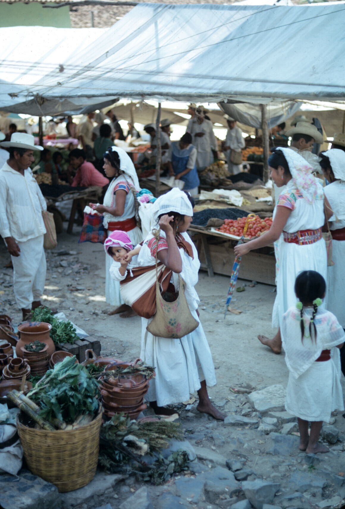vrouwen op markt; NB "maxtahual" (tulbandachtige haa...