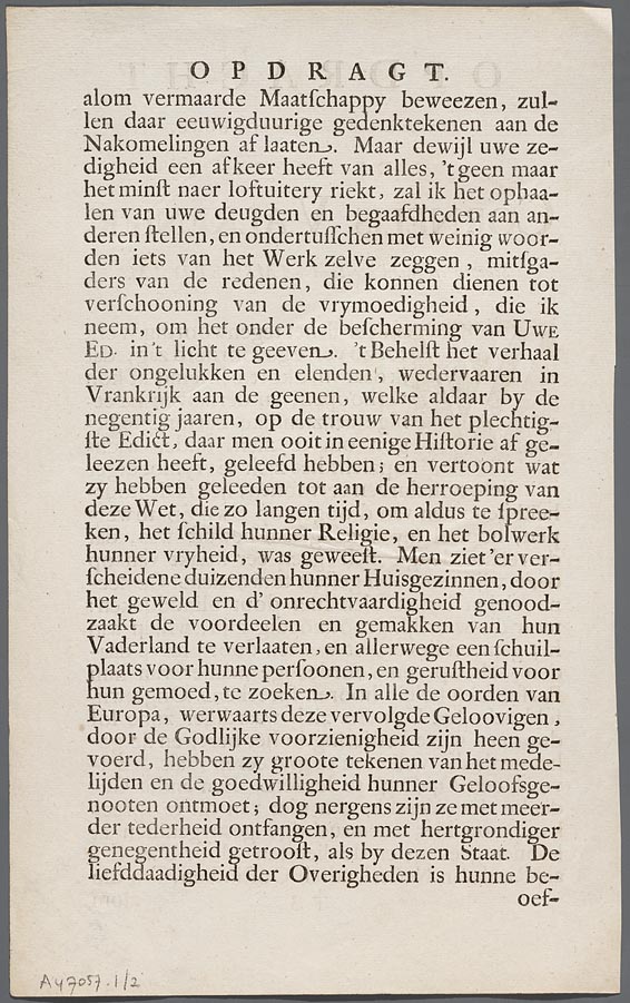 Opdracht uit "Historie der gereformeerde kerken van ...