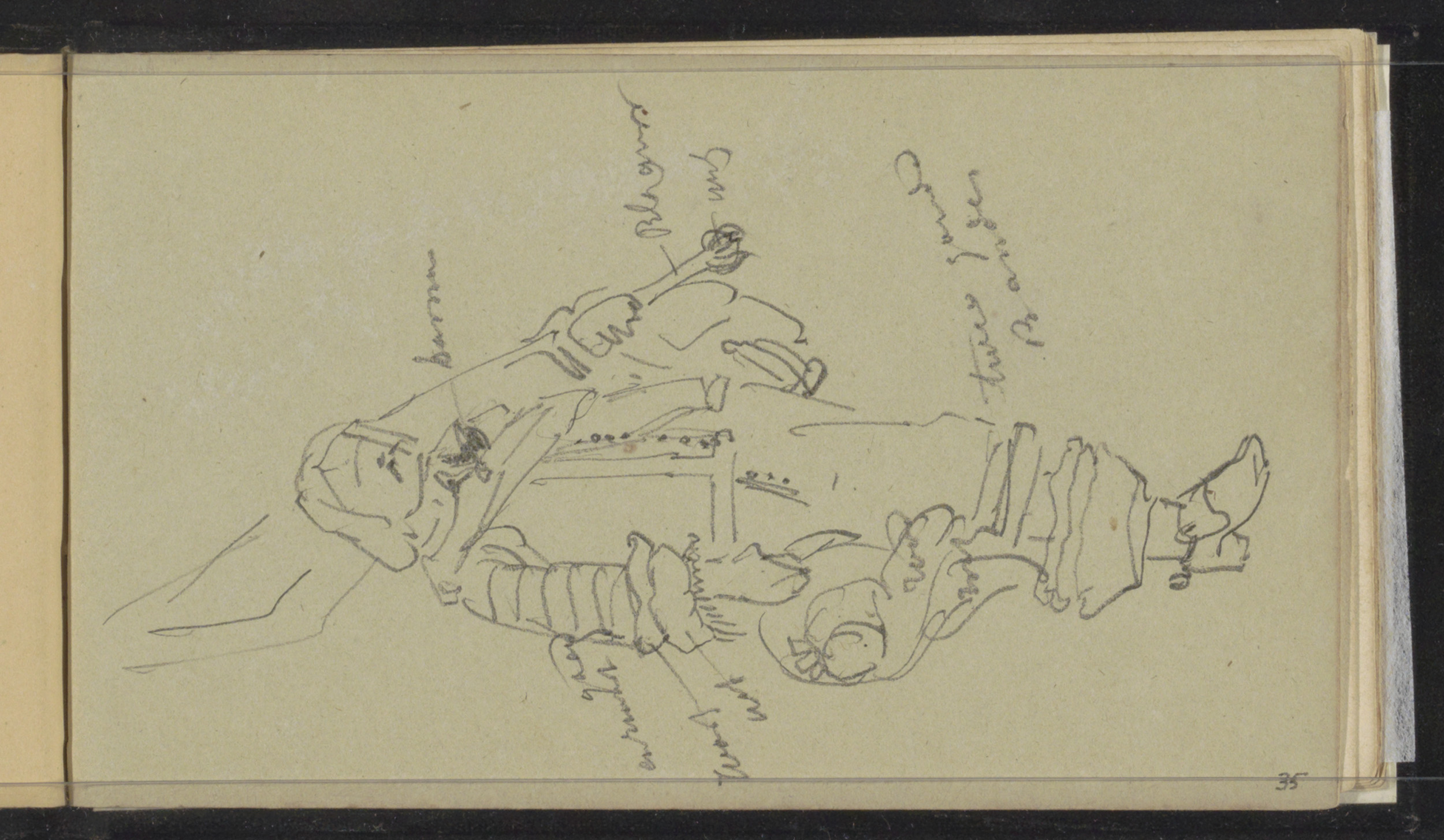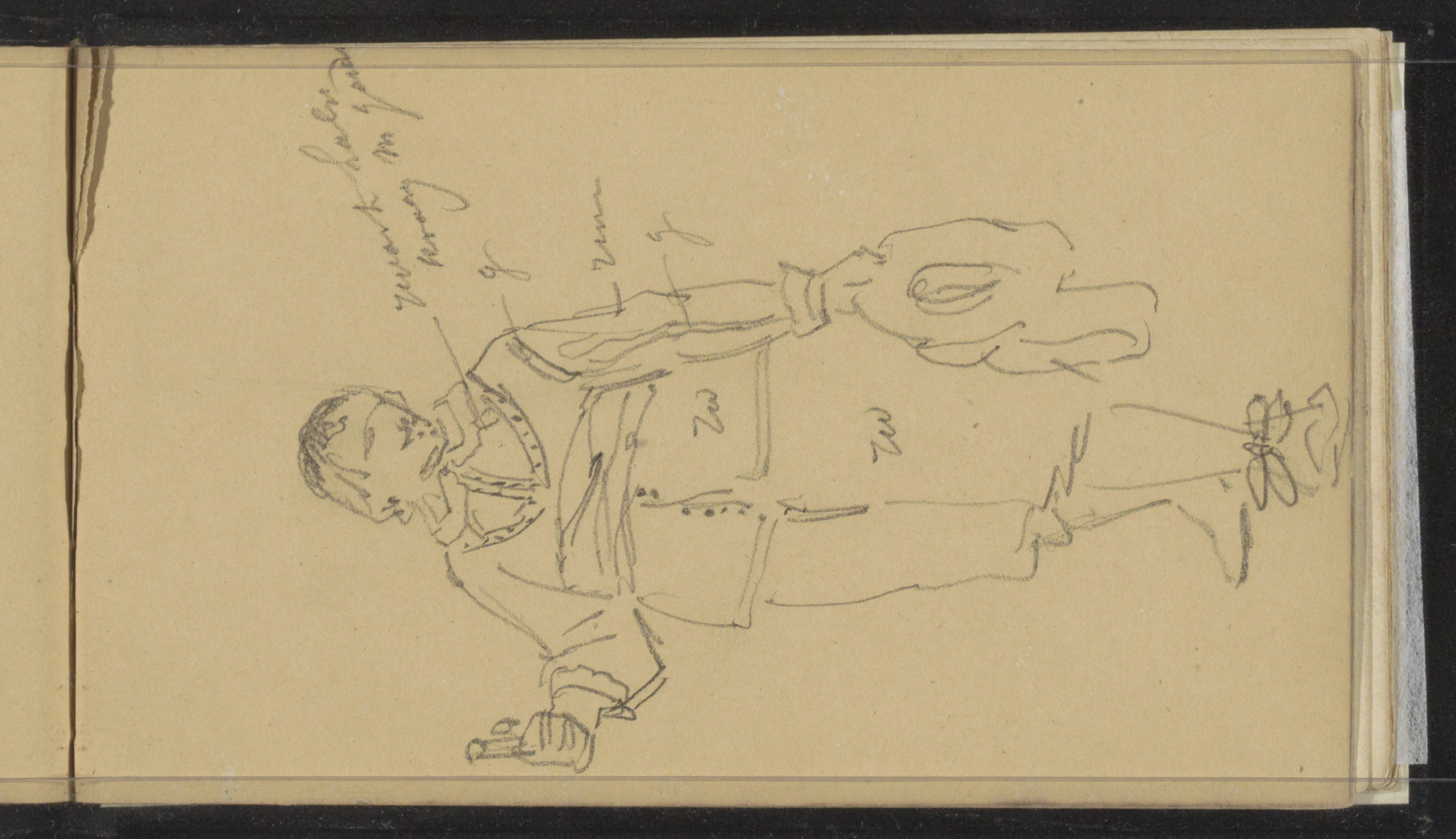 Man in zeventiende-eeuwse kleding en een kostuumstudie
