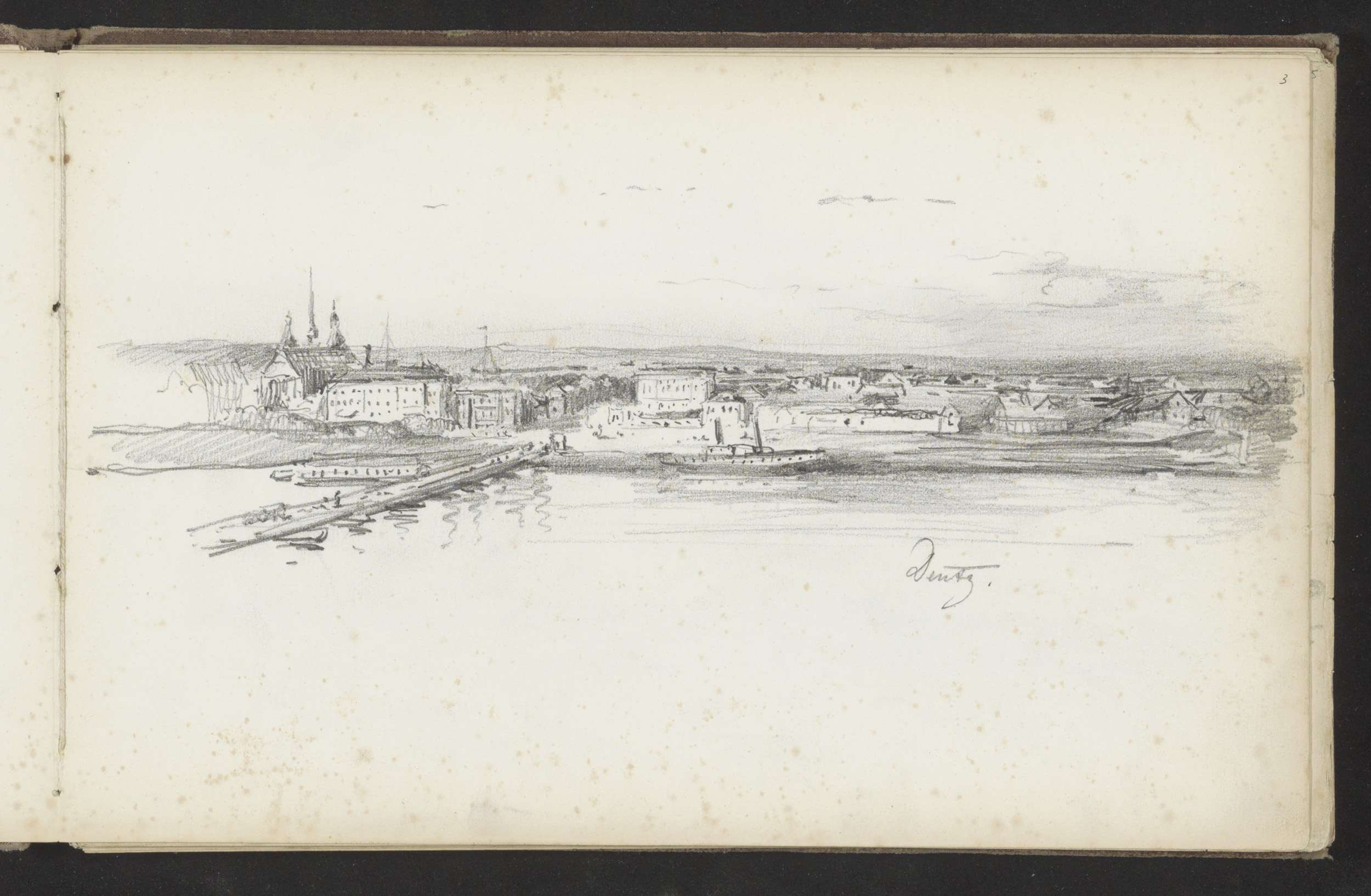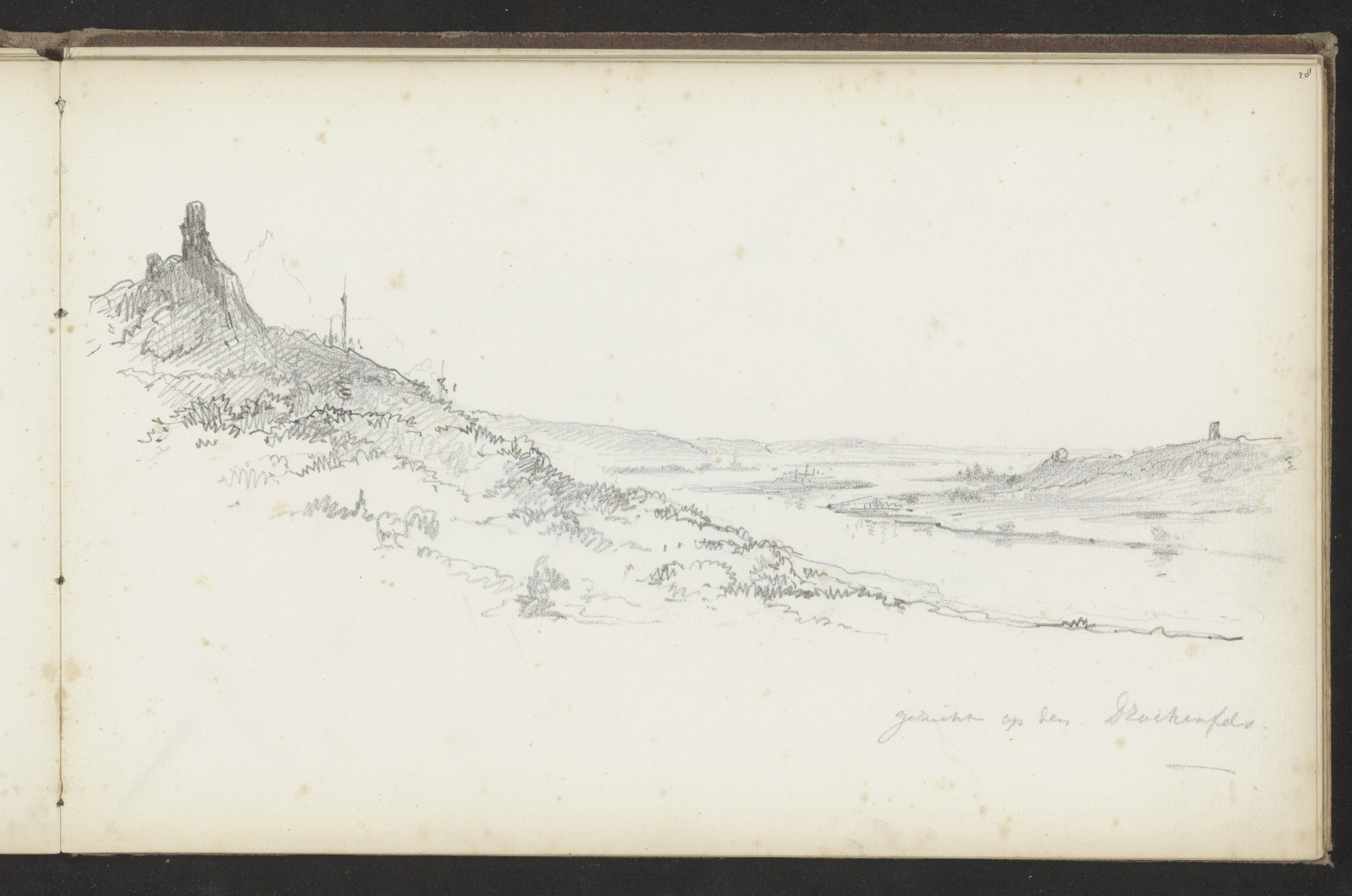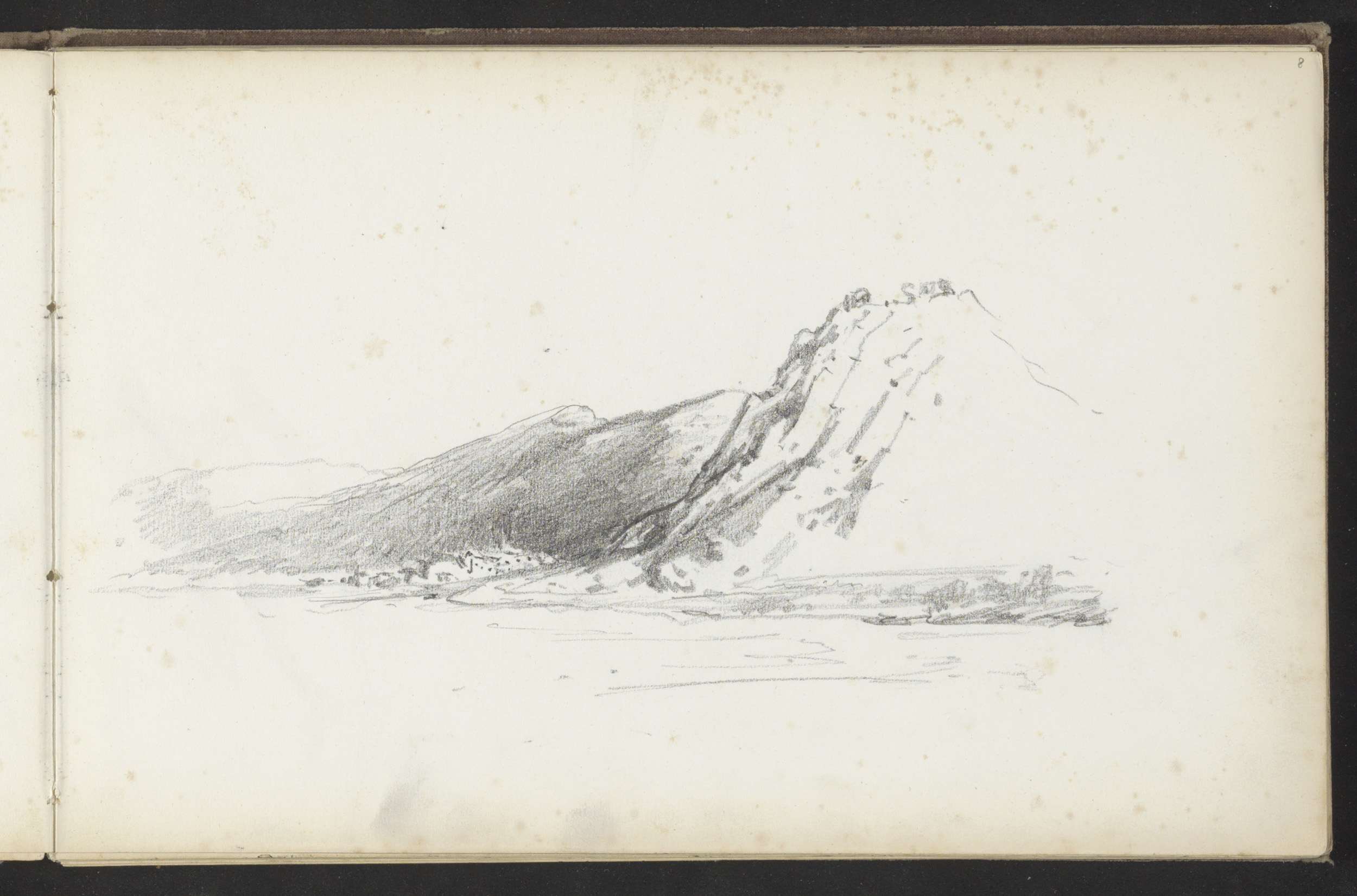 Dorp aan de voet van een berg, vermoedelijk aan de Rijn