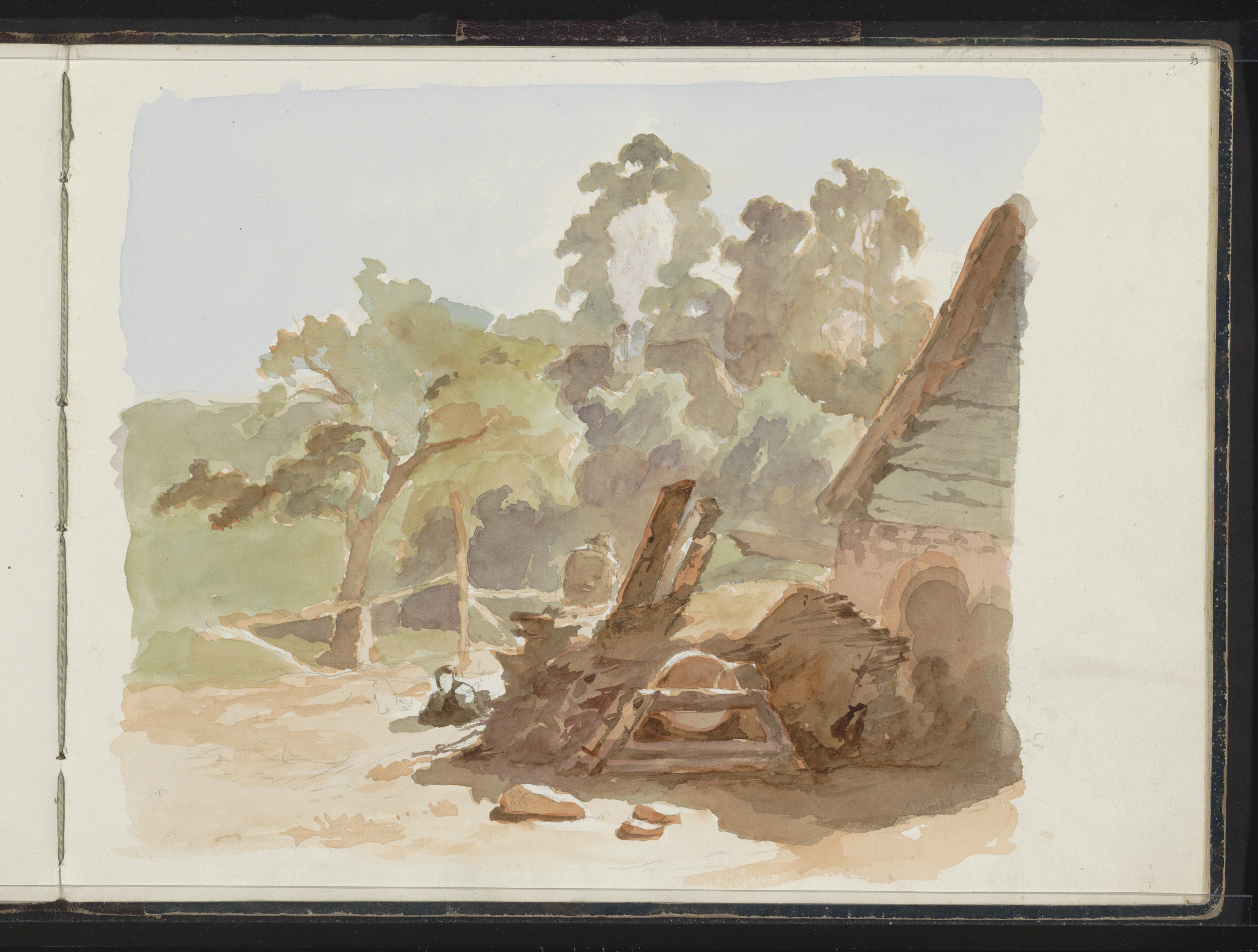 Huizen op het platteland, vermoedelijk bij Oosterbeek