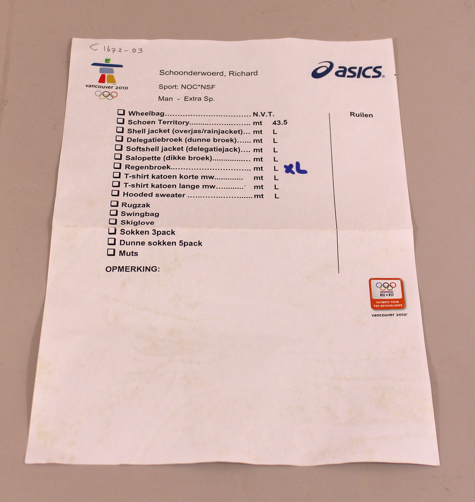 Checklist kledingpakket Olympische Winterspelen 2010...