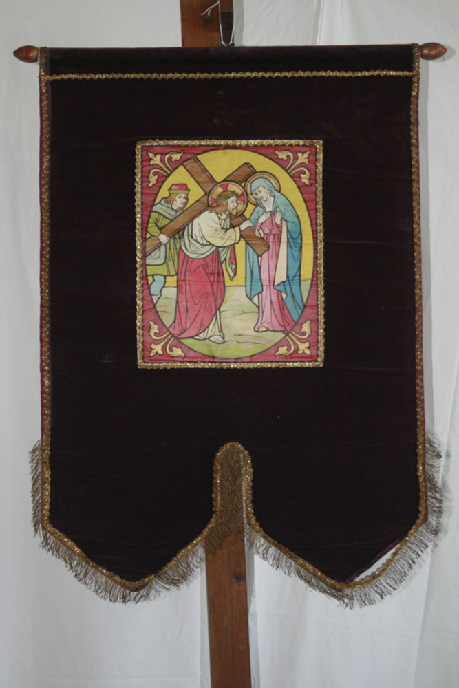 Vaandel met afbeelding van de ontmoeting van Maria m...