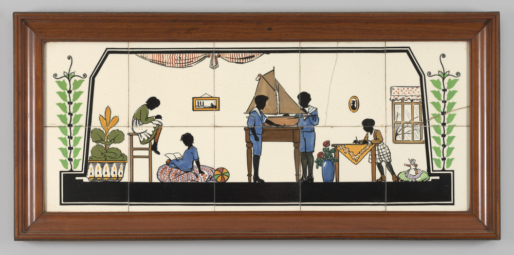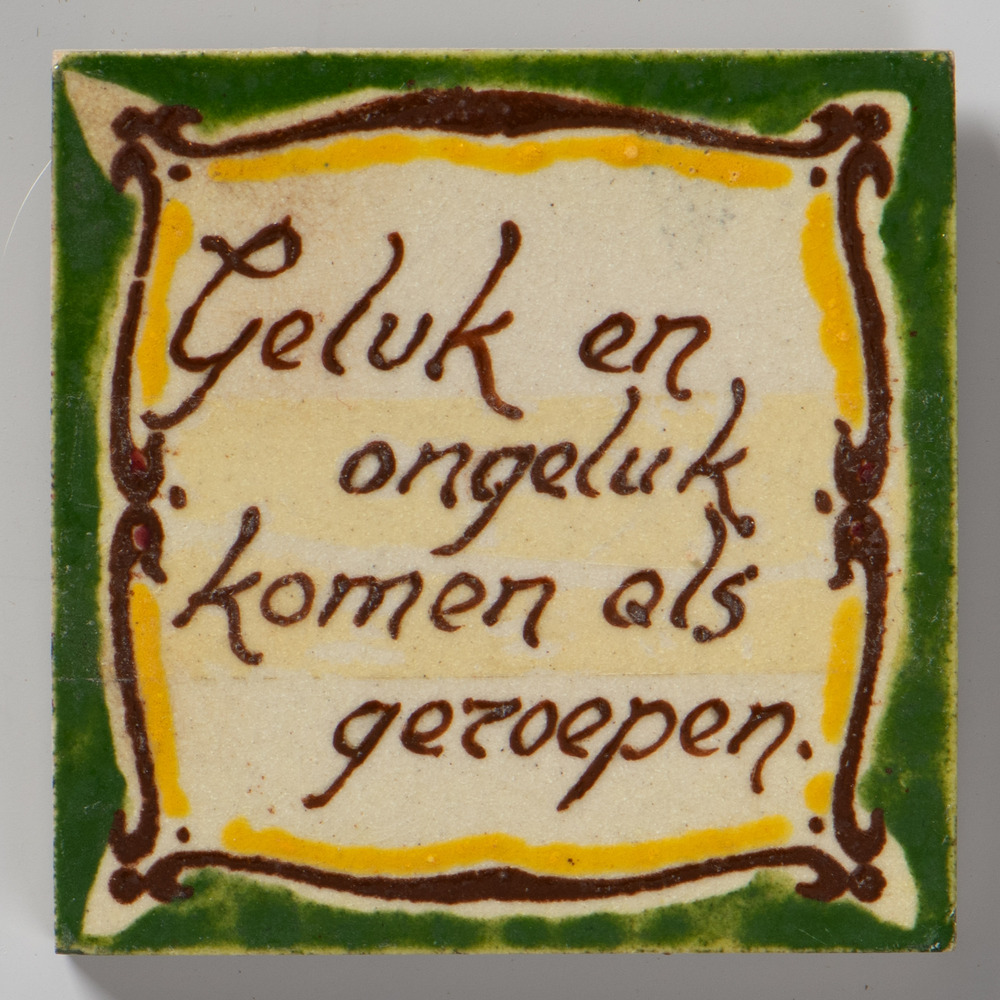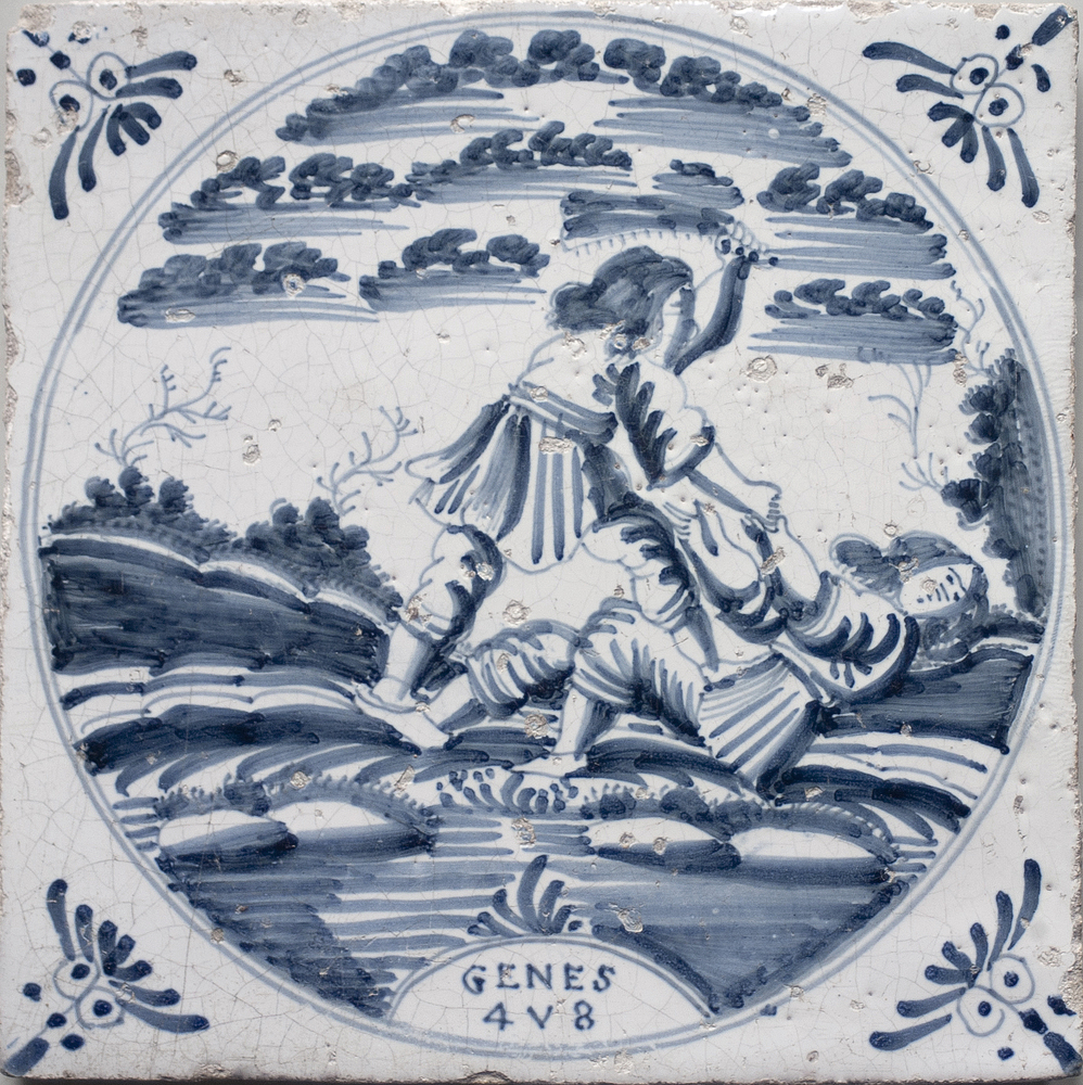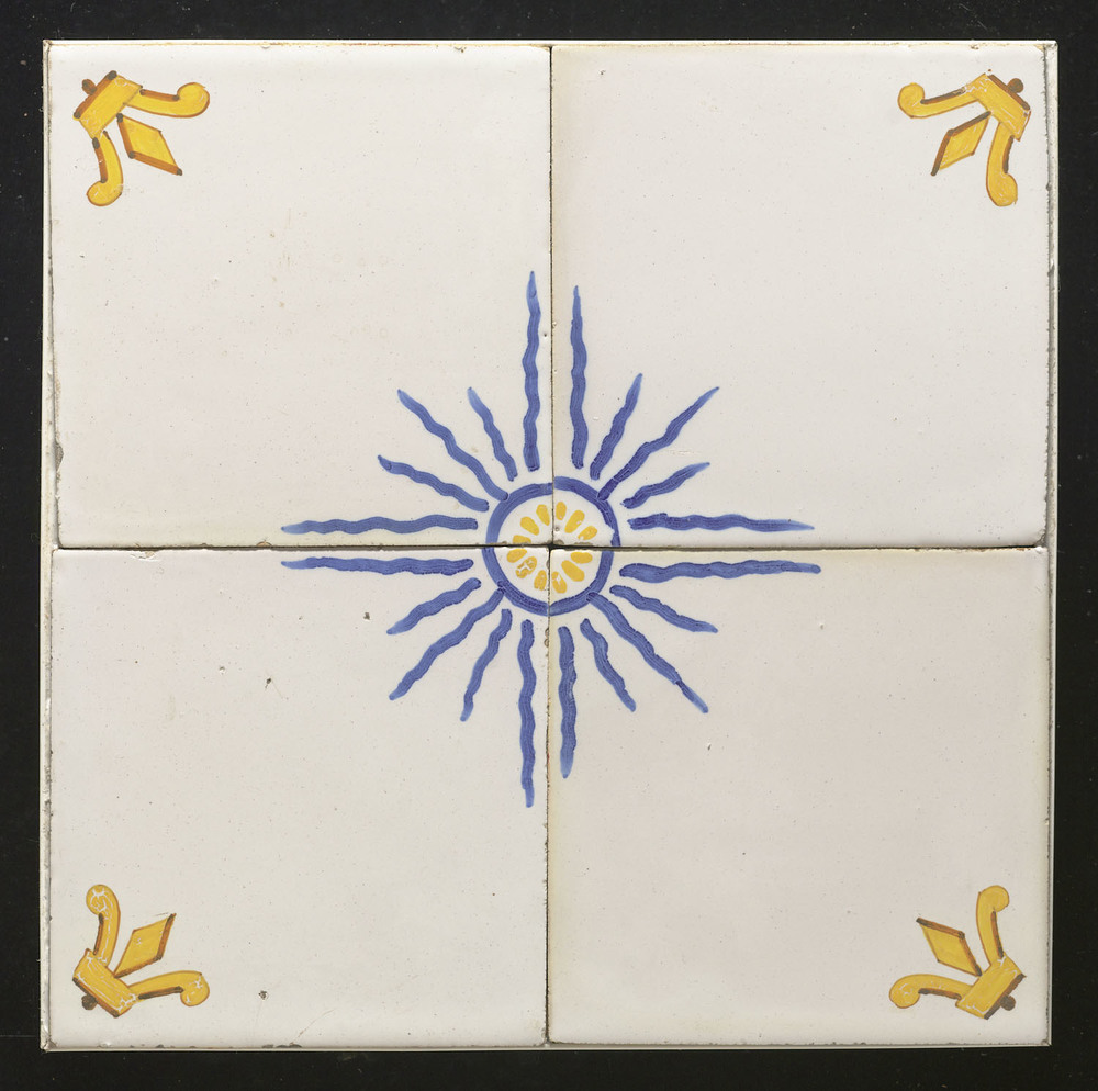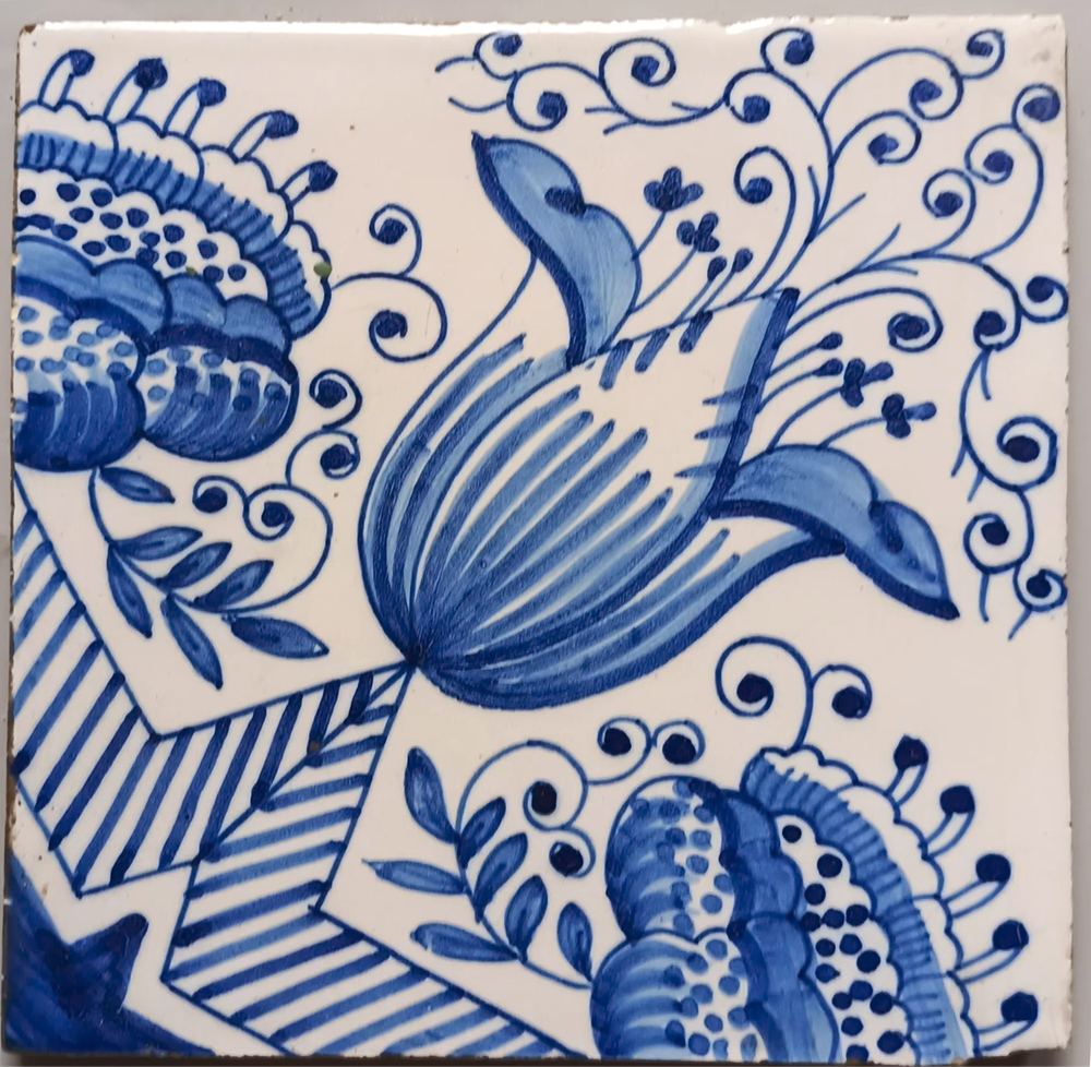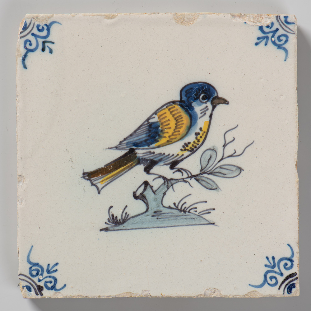 Tegel van keramiek met tinglazuur, voorstellende: or...
