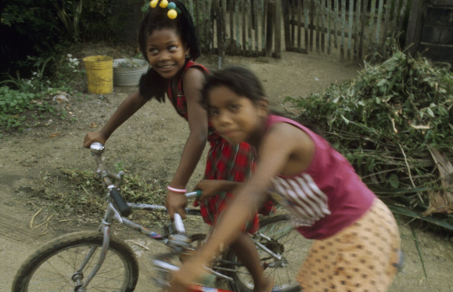 Paramaribo, twee meisjes met fiets