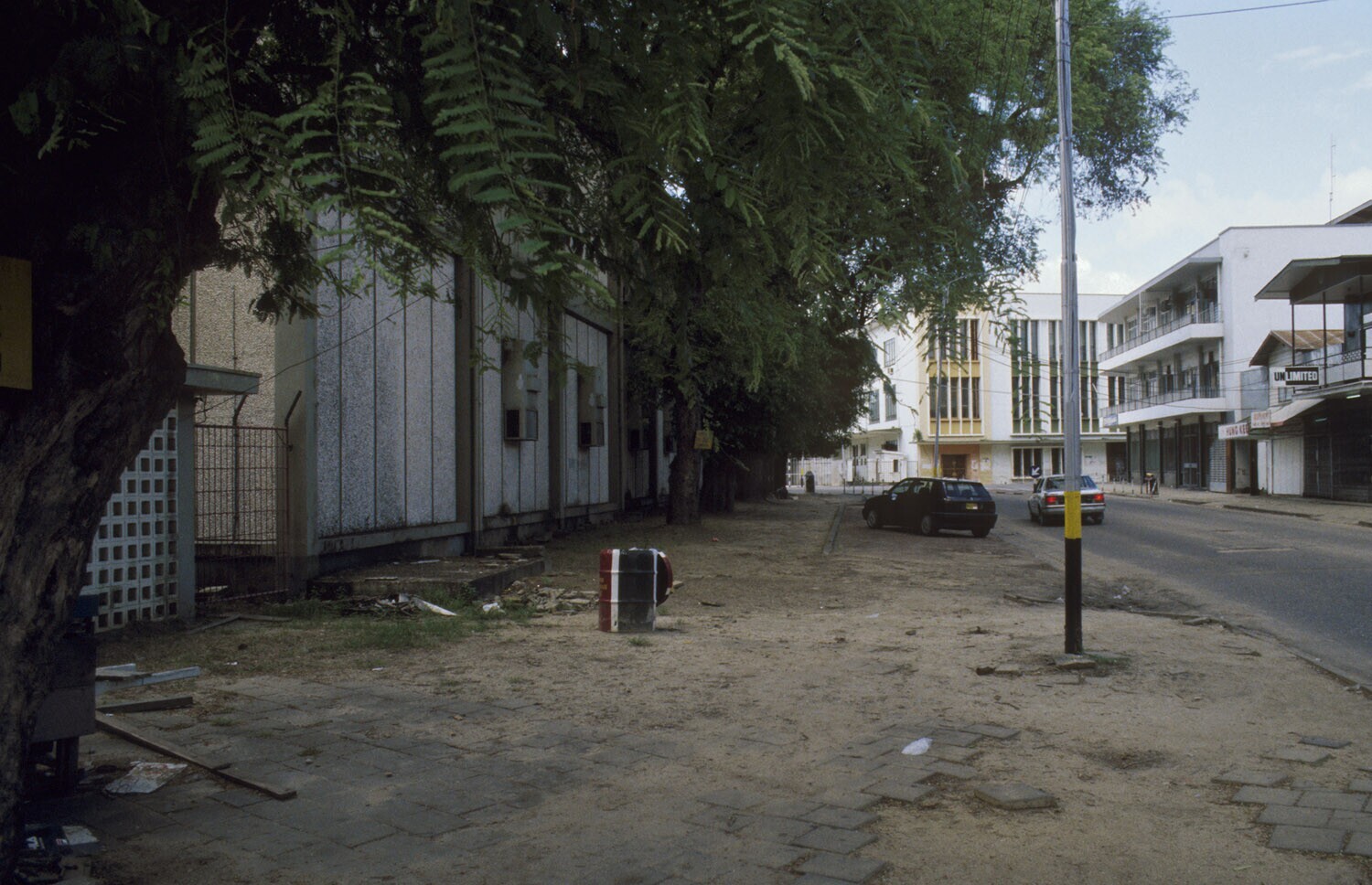 Paramaribo, Knuffelsgracht nu gedempt; links Vaillan...
