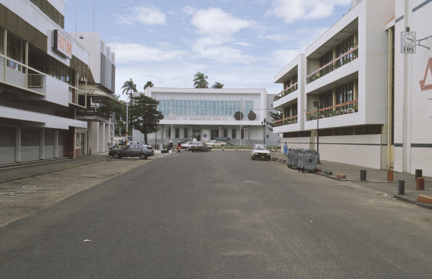 Paramaribo, vanuit Noorderkerkstraat Surinaamse bank