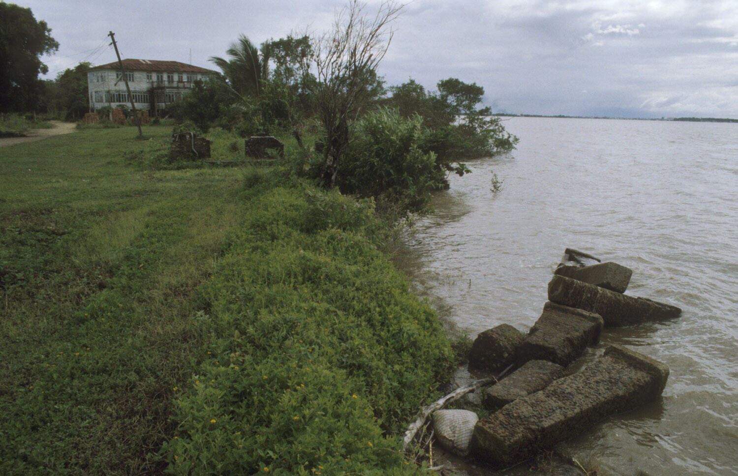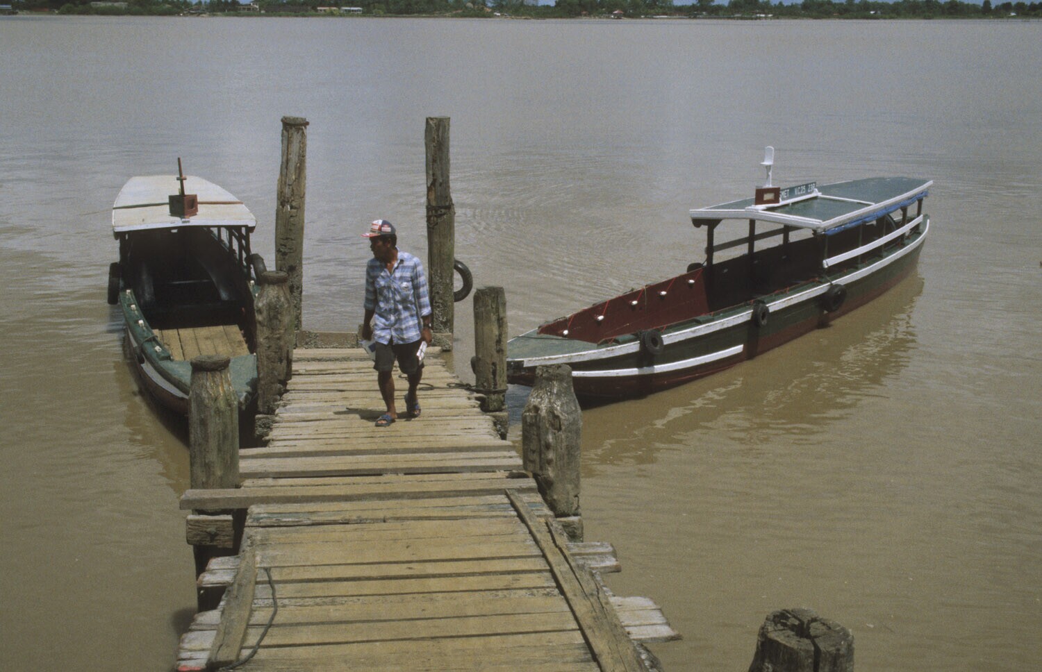 Voormalige plantage Jachtlust; boot op de Surinameri...