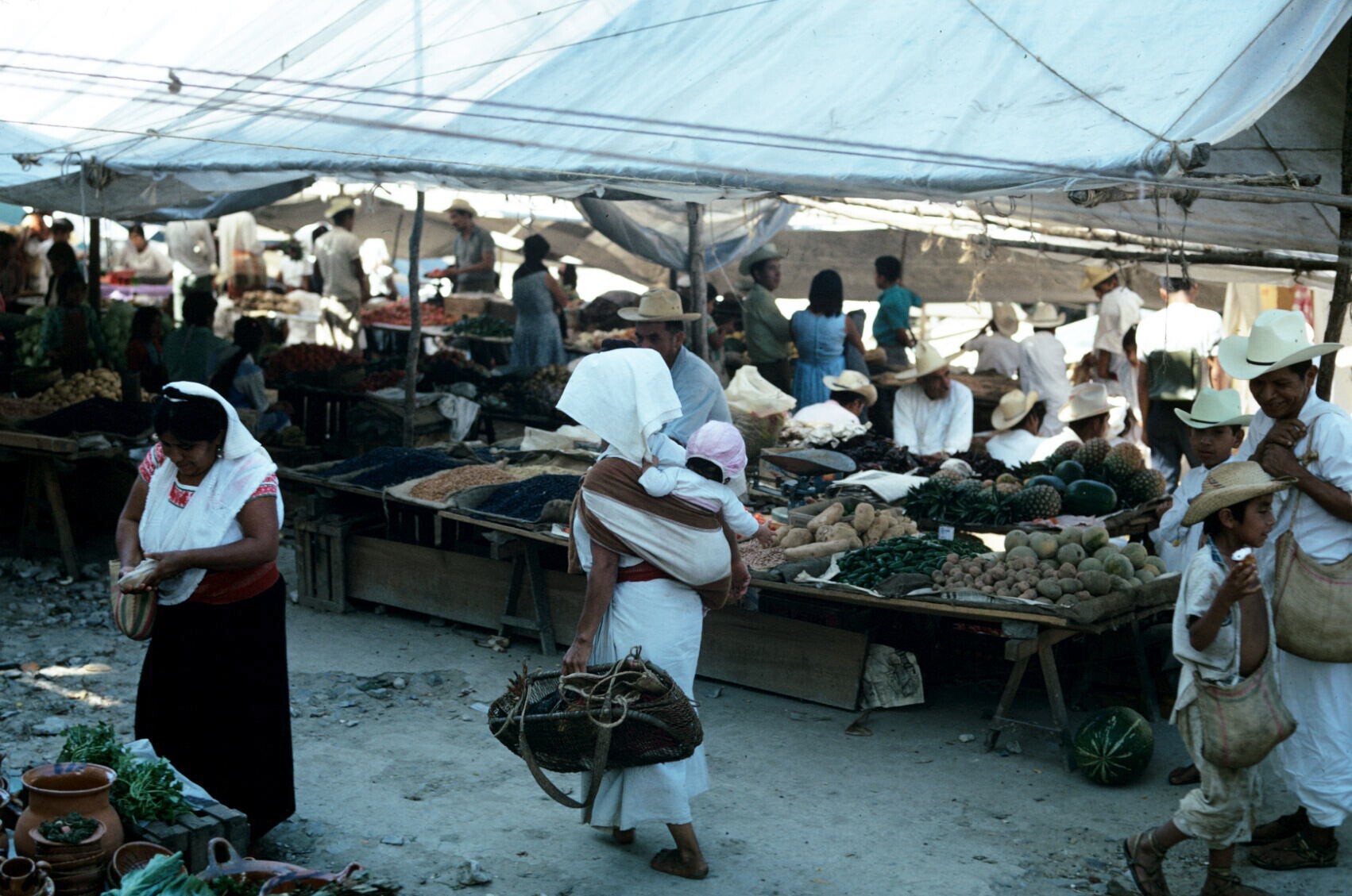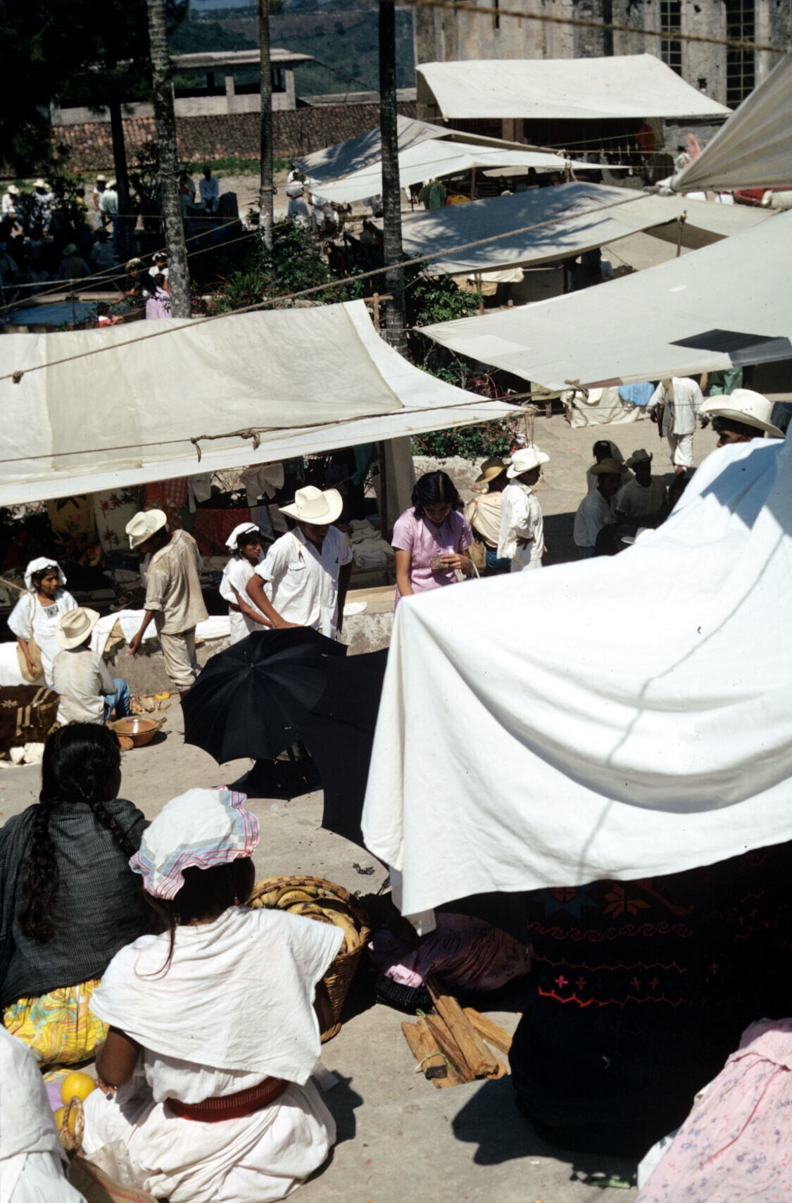 vrouwen op markt; NB "maxtahual" (tulbandachtige haa...