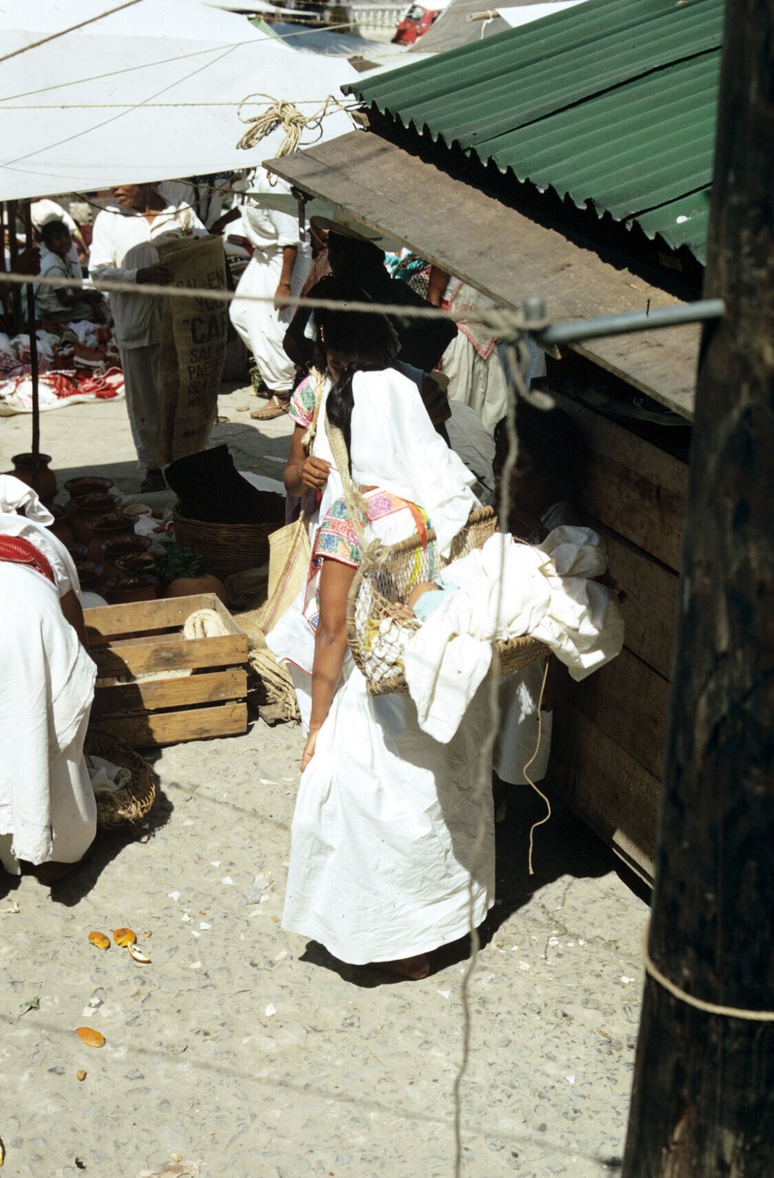 vrouw met "hua'cal " (draagmand van de Cuetzalan-regio)