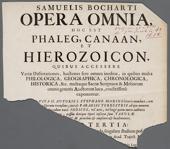 Titelpagina "Geographica sacra seu Phaleg et Canaan"