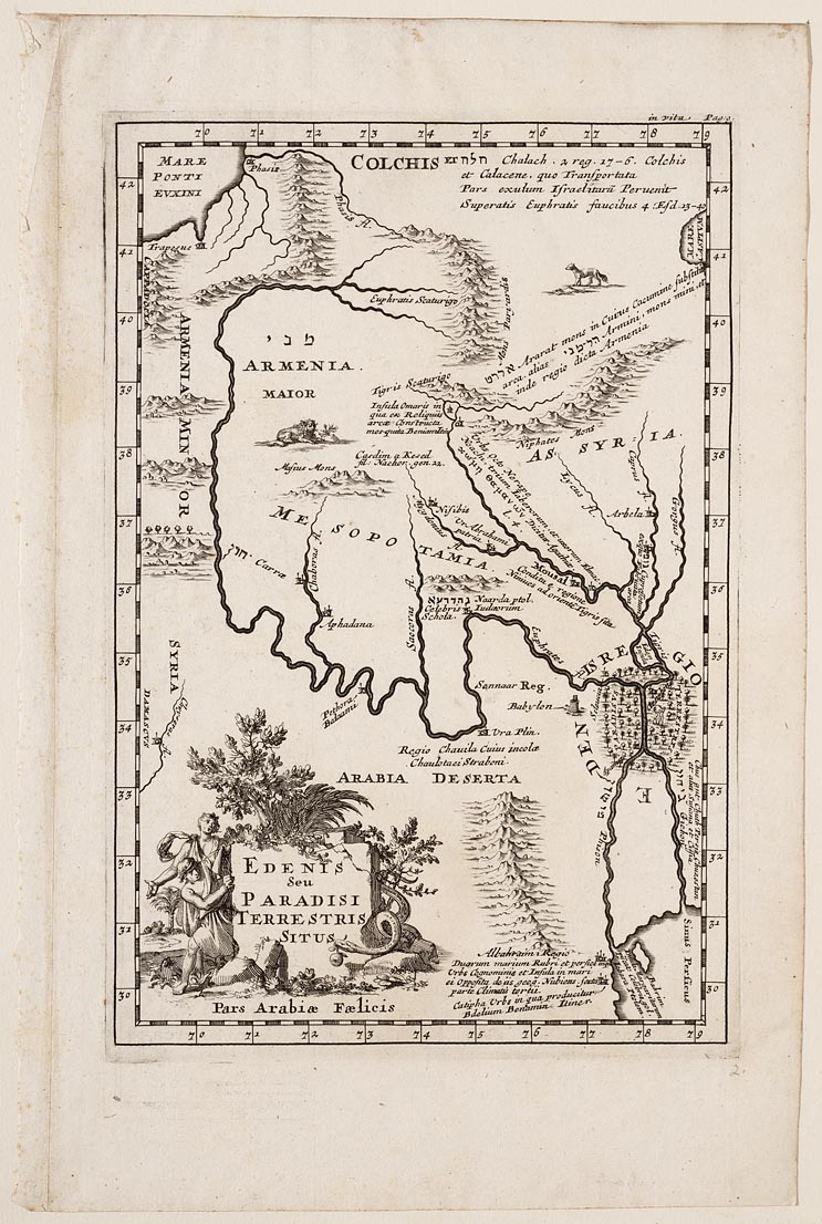 Vignet op landkaart "Edenis seu paradisi terrestris ...