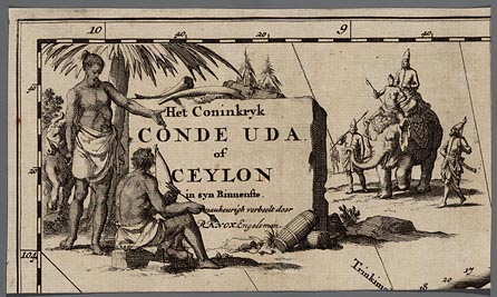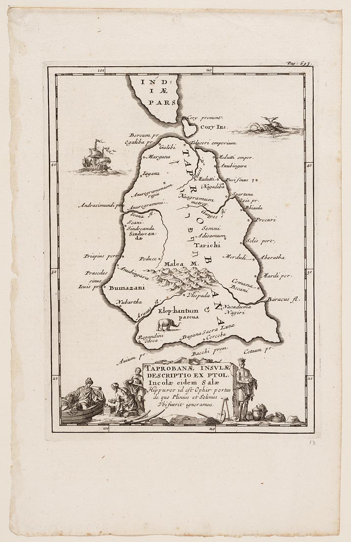 Vignet op landkaart "Taprobanae inslvae descriptio e...
