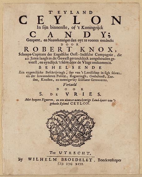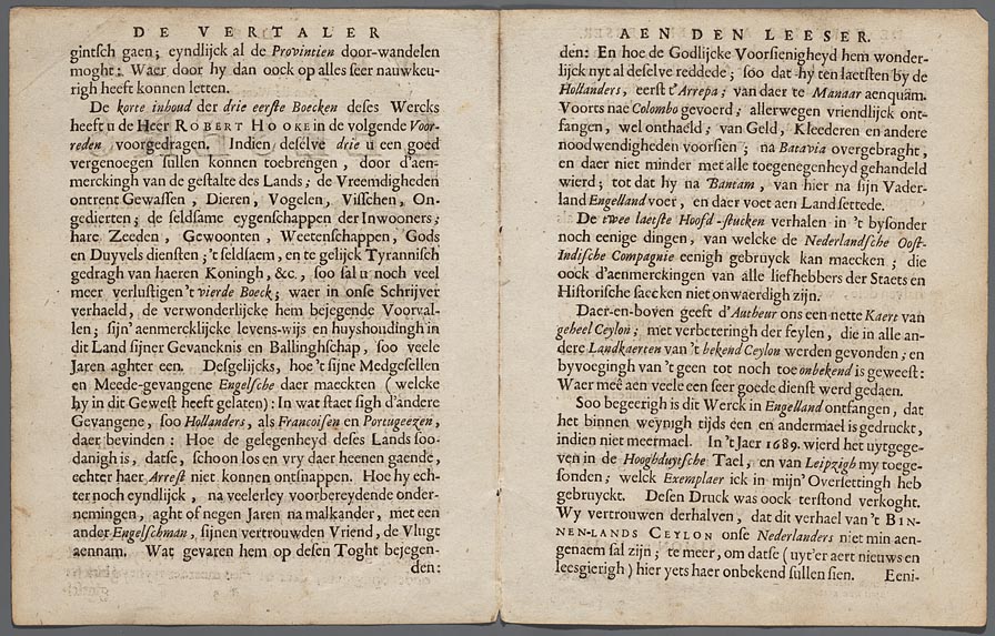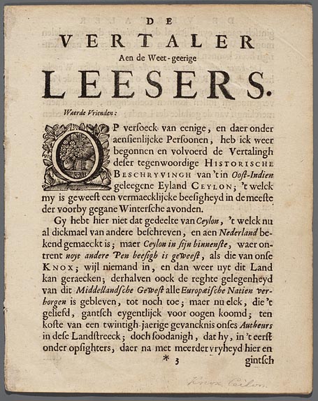 Blad met 4 tekstpagina´s uit "´t Eyland Ceylon"