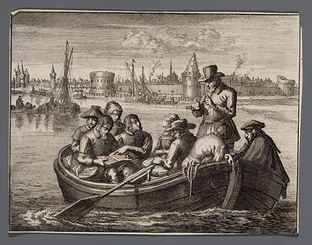 Pieter Pietersz. Bekjen predikt aan 8 personen in ee...