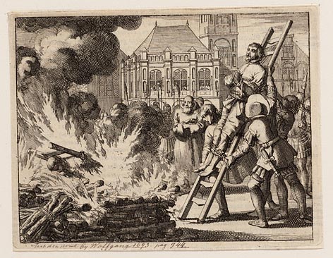 Pietersz. Bekjen, met een lotgenoot aan de brandstap...