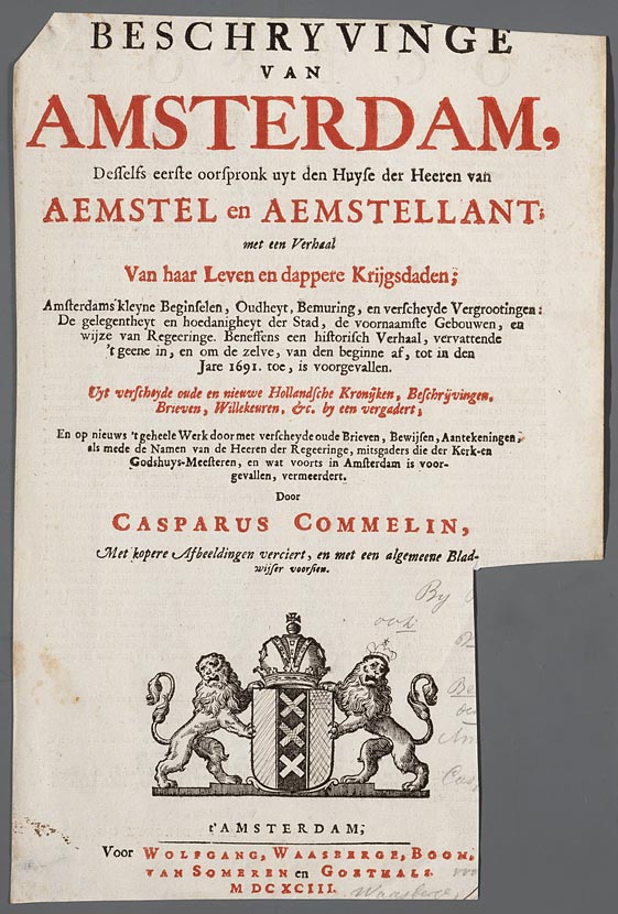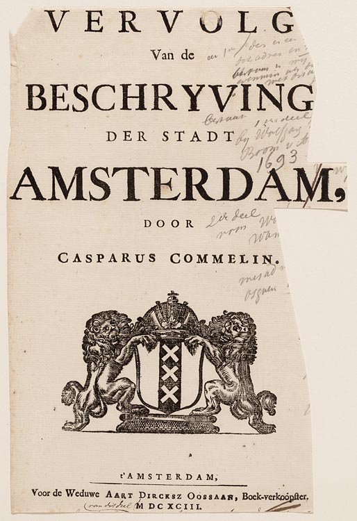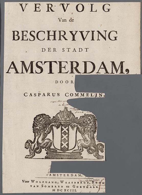 Titelpagina "Vervolg van de beschryving der stadt Am...