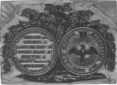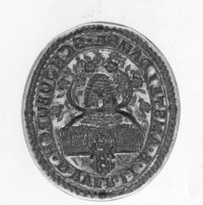 Zegelstempel en afdruk metselaarsgilde
