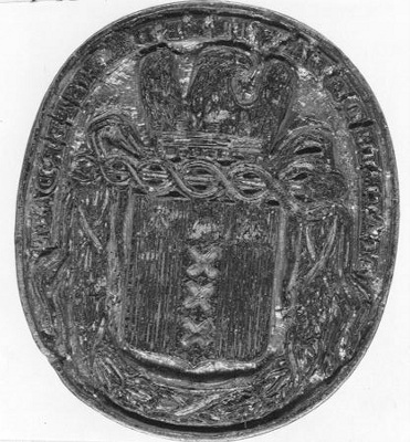 Zegelstempel en afdruk 'Amsteldamse schouburgh d.yve...