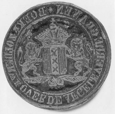Zegelstempel 'Amsteldamse schouburgh d.yver. i.l.b.'...