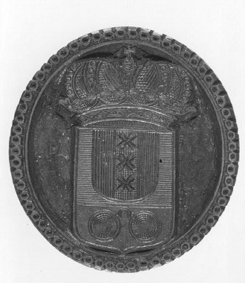 Inktstempel gekroond wapen Amsterdam, met handvat