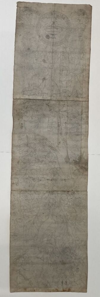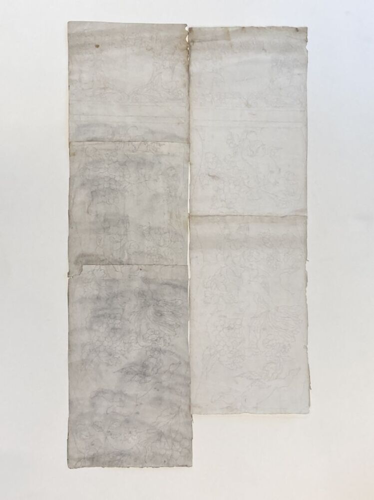 2 delen van een ontwerptekening met een floraal decor