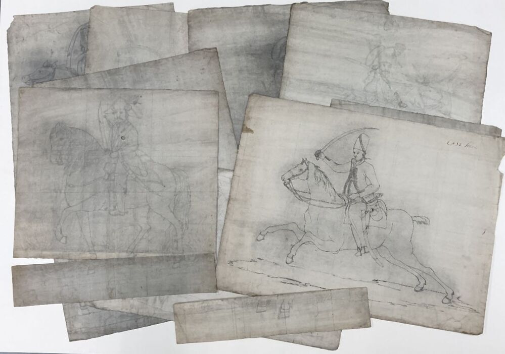 2 sponsen / ontwerptekeningen voor een tegeltableau ...