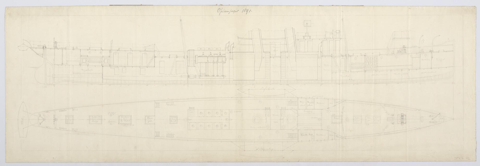 De opiumjager Hr.Ms. 'Argus', 1891. verticale langsd...
