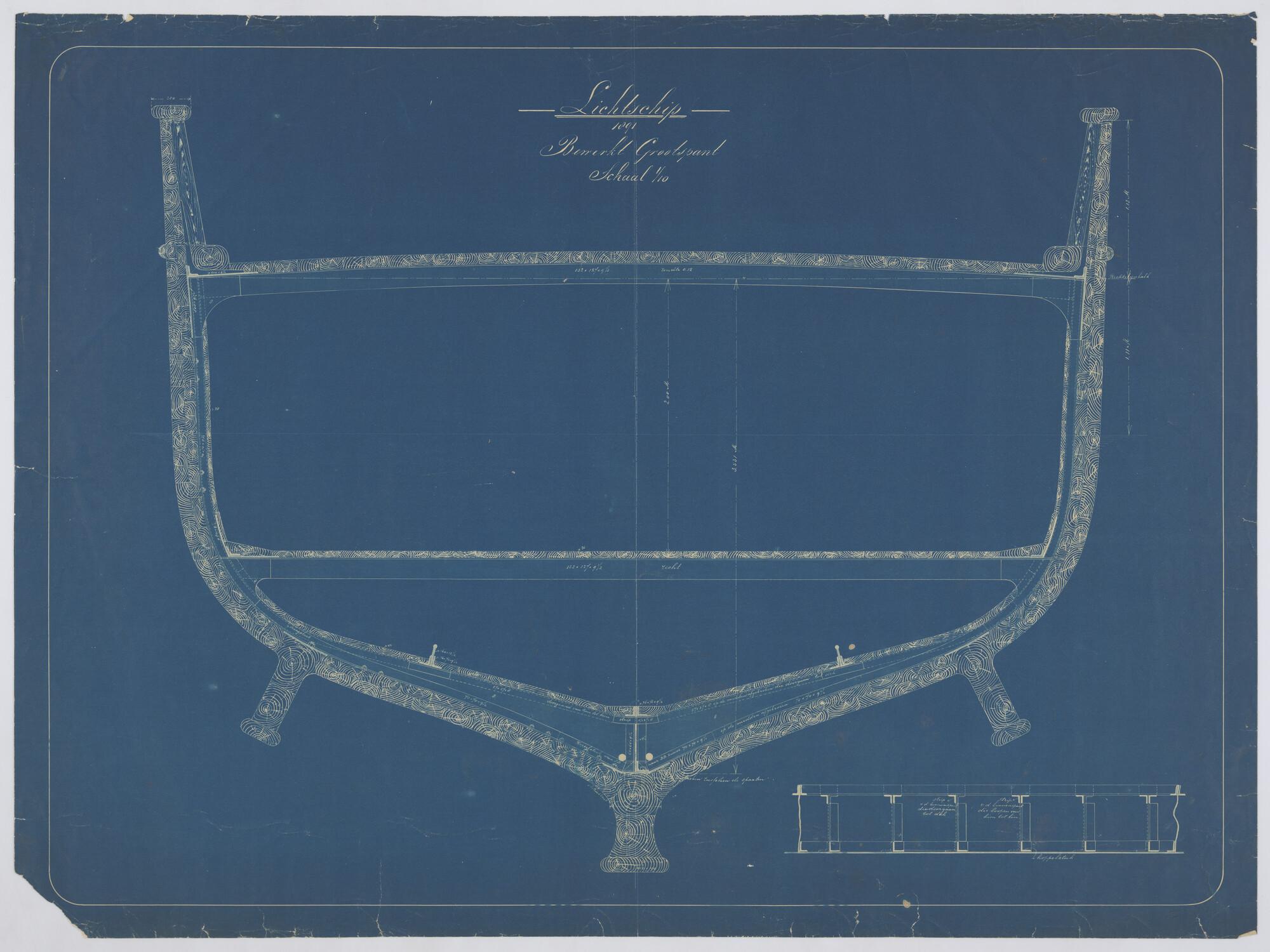 Het lichtschip 'Seven Stones', 1891. Spantenraam