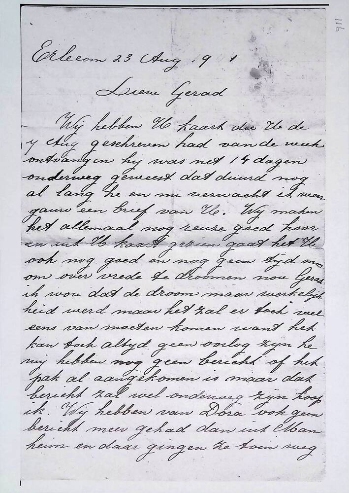 Brief in enveloppe. 23 augustus 1944. Aan den heer G...